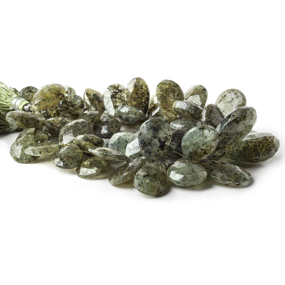 Moss Quartz with Pyrite Inclusions faceted pear briolettes 8 inches in length with 55 beads measuring approximately 16x10-30x18mm