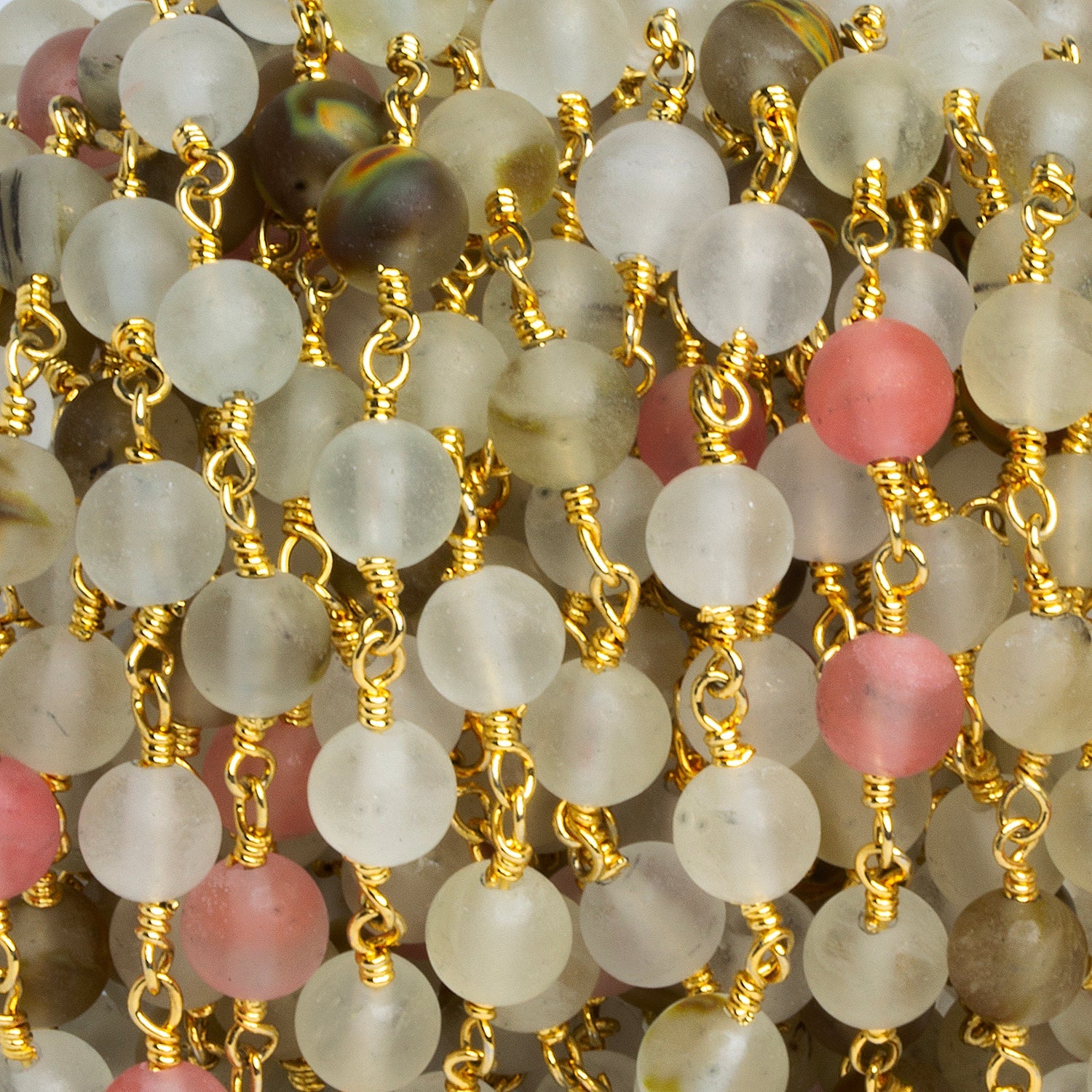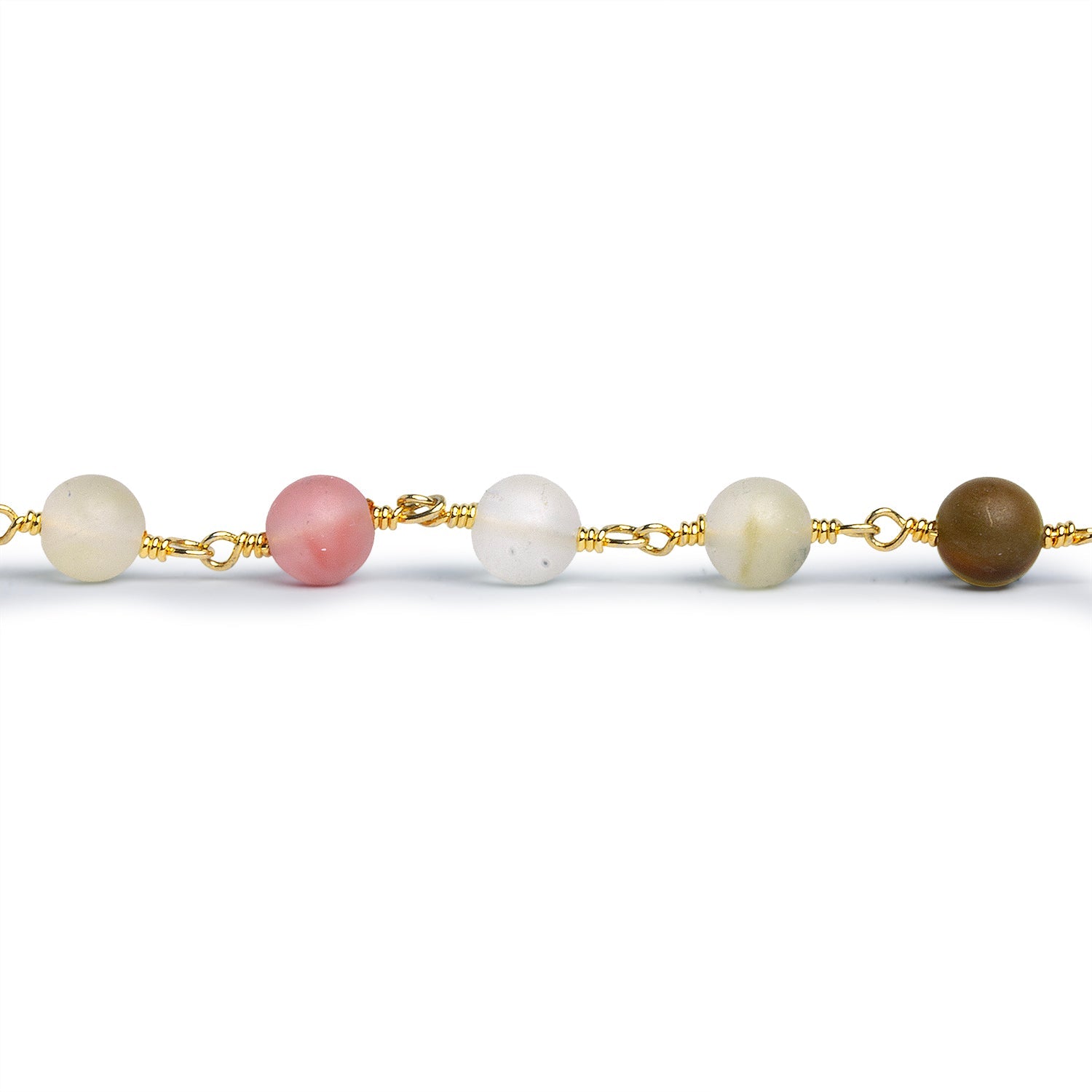 6mm Matte Multicolor Quartz Round Gold Chain 23 beads