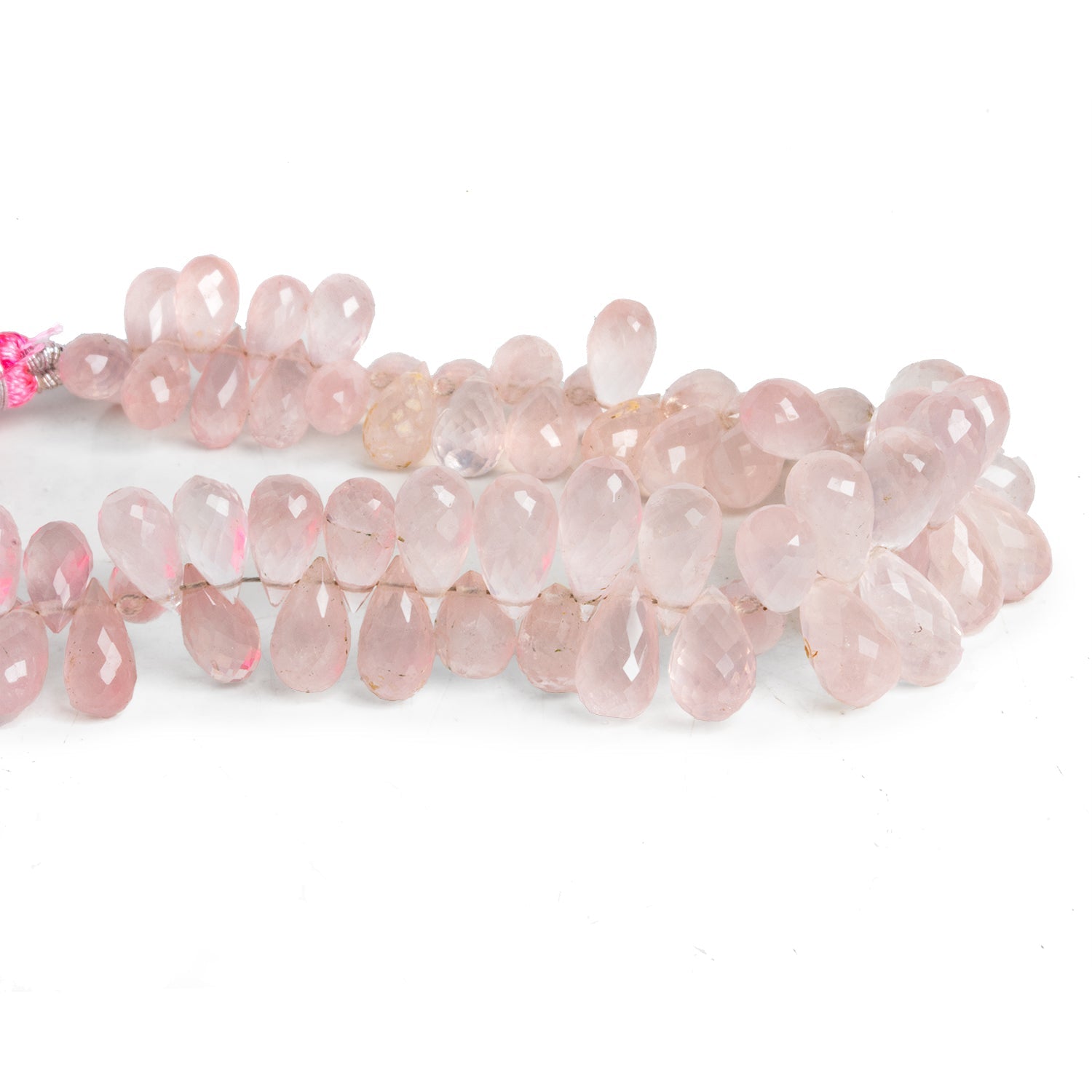 Beads range from about 8x4mm to 10x5mm. These high-quality Rose Quartz pieces show off a rich pink color on clear bodies with the slight milkiness that makes the gemstone so sought after. This specially curated strand will be perfect inspiration to have at hand when you sit down to your next slate of jewelry designs in necklaces, earrings and more.