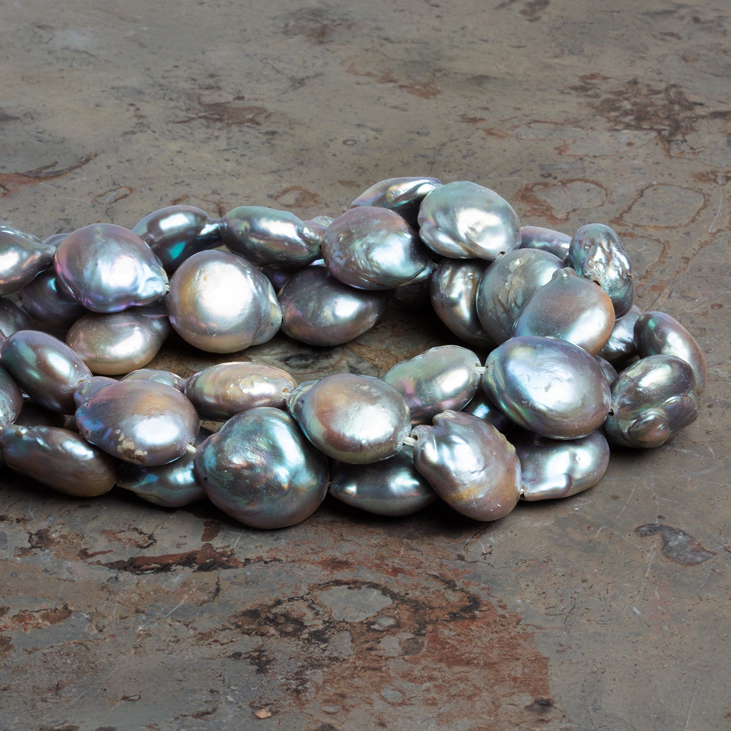 Perfect for necklaces, bracelets, or standout focal accents, these pearls combine timeless sophistication with an eye-catching contemporary edge. Their silvery luster makes them a versatile pairing with gemstones, metals, or additional pearl varieties, while their generous size and organic surface textures guarantee that every creation has a touch of artistic individuality.