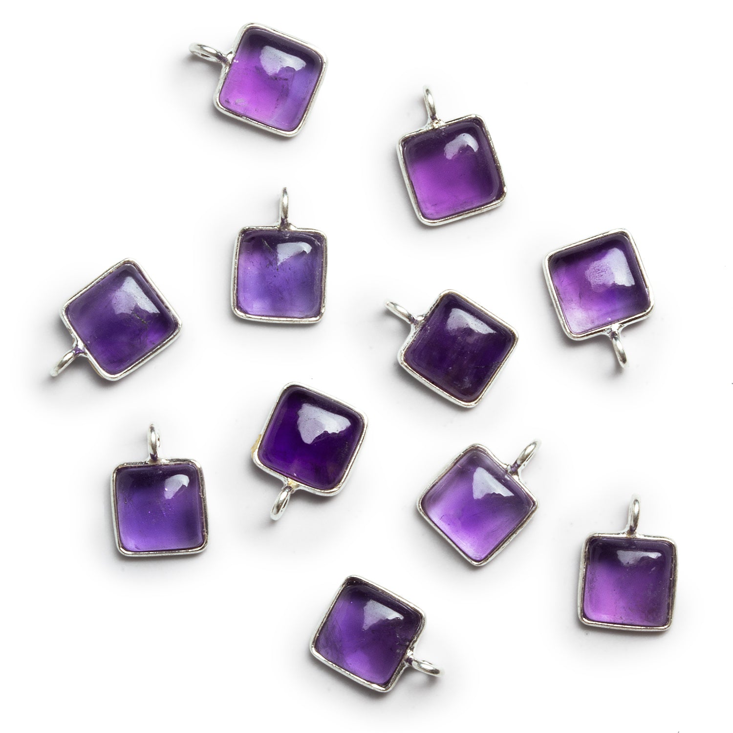 These 8mm Silver Bezeled Amethyst Square Pendants offer a rich wash of purple color framed in a clean, modern silver setting. Each cabochon shows natural amethyst clarity with tones ranging from soft lilac to deeper violet, giving every pendant its own organic character. The polished square cut enhances the gem’s saturation while the slim silver bezel adds a bright, refined edge.