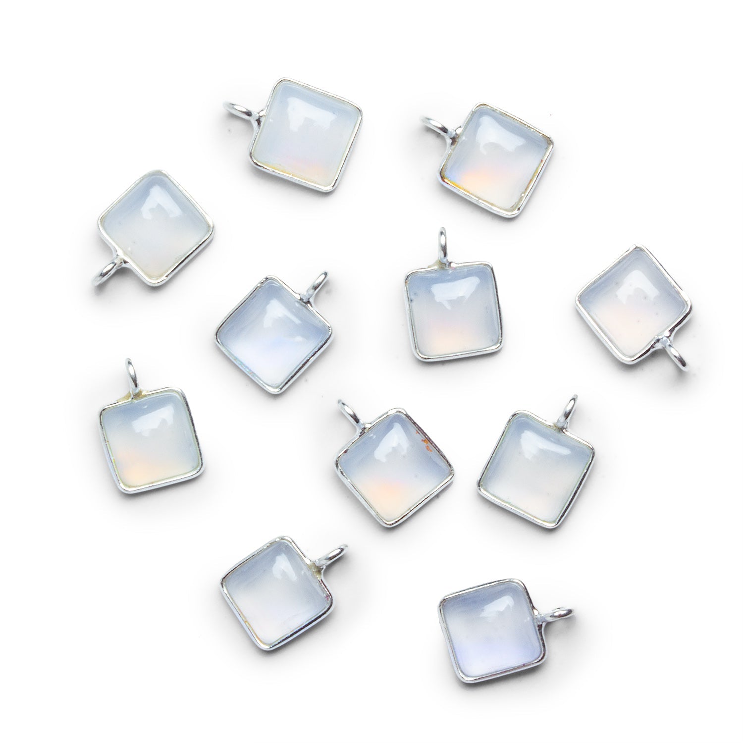 These 8mm Silver Bezeled White Chalcedony Square Pendants offer a soft, luminous glow that shifts gently in the light, giving each piece a serene, airy presence. The milky white chalcedony is smoothly domed for a refined finish, while the clean silver bezel enhances its cool-toned elegance. Their petite square profile makes them ideal for delicate necklaces, charm accents, or coordinated earring sets.