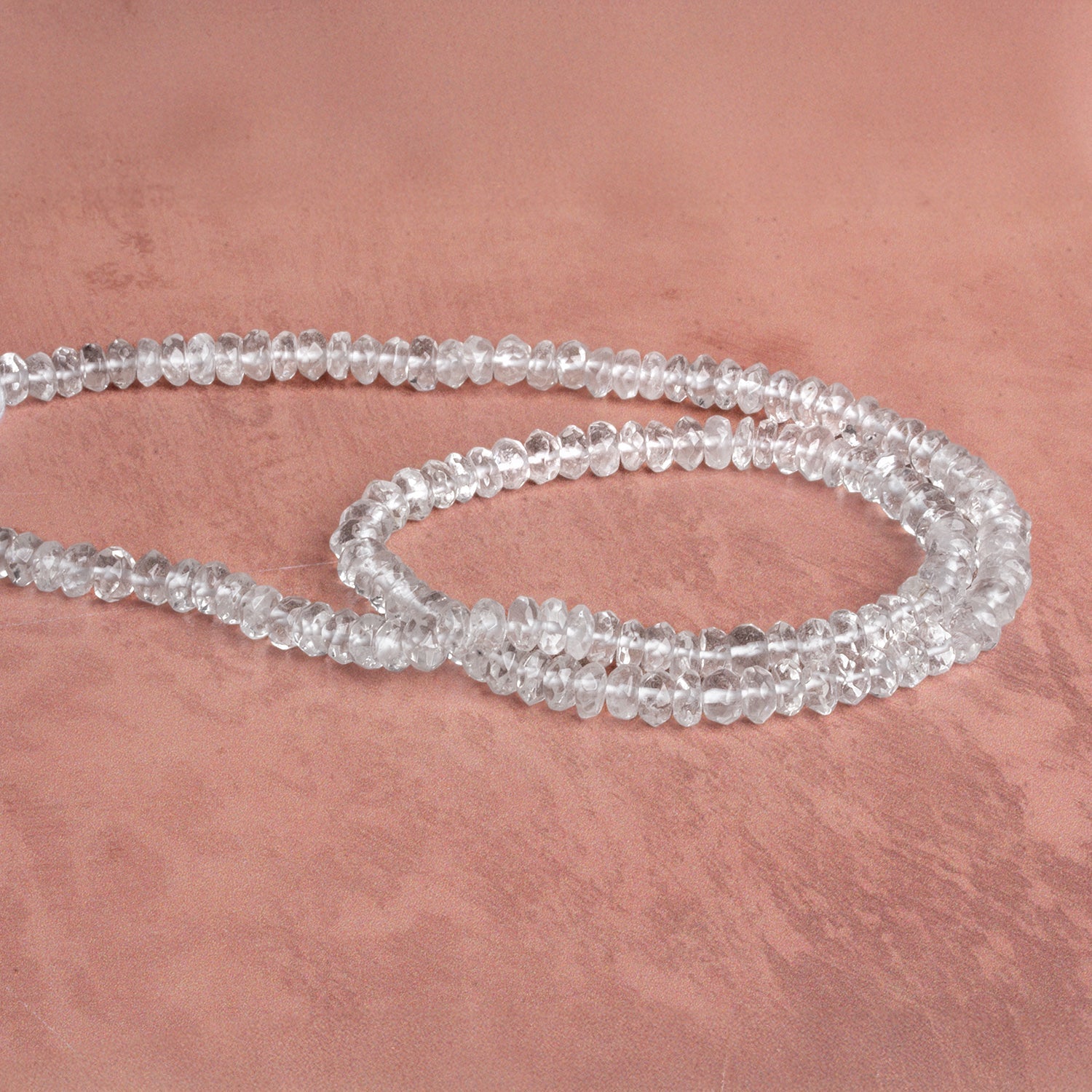 Crystal Quartz Hand Faceted Rondelles exhibit a vitreous luster, the stones have a superior make, a symmetrical shape, are matched on strand for quality, gems are a colorless hue, and the transparent beads are highly brilliant for a strand of sparkling gems to enhance any project.