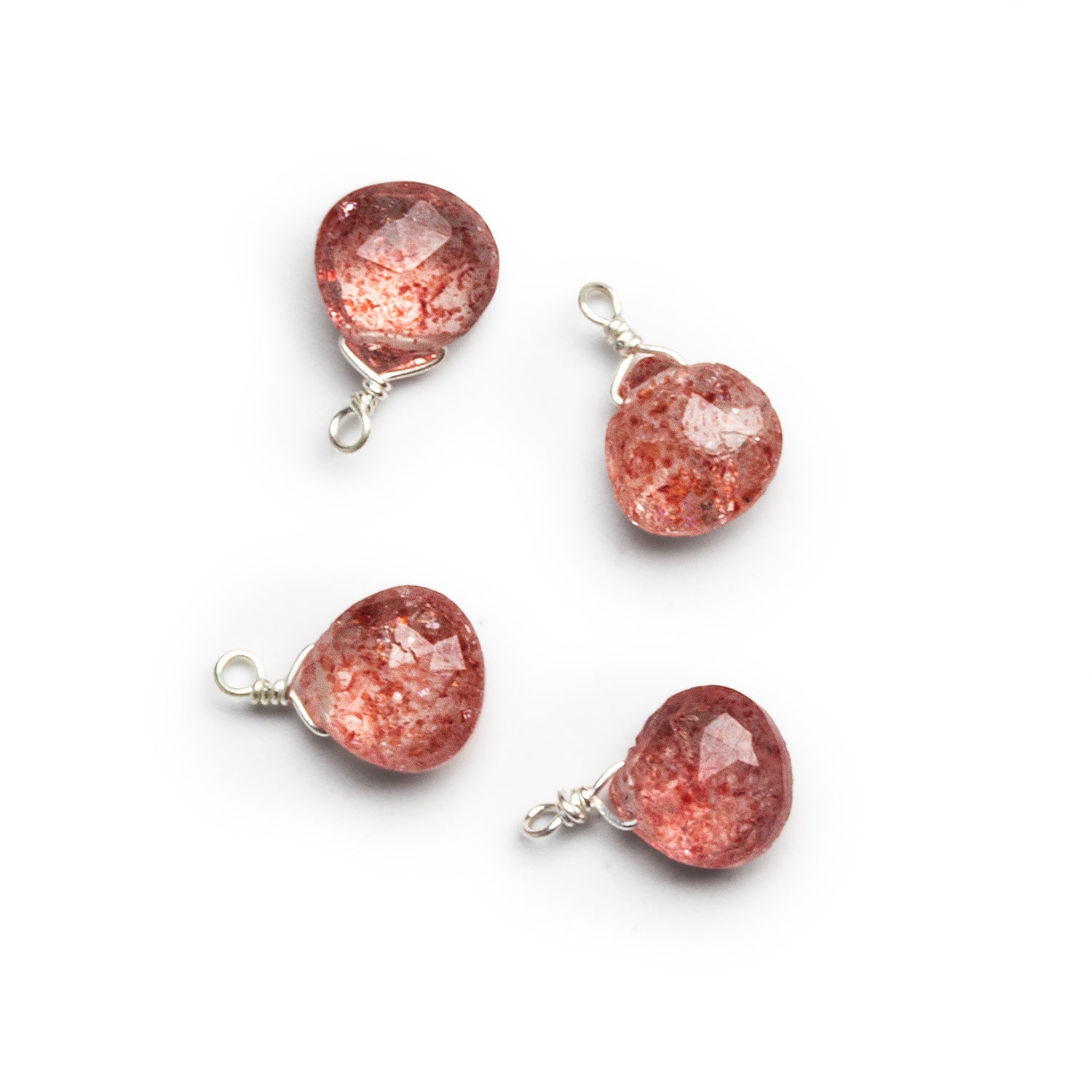 7mm Strawberry Quartz Wire-Wrapped Heart Pendants 4 beads