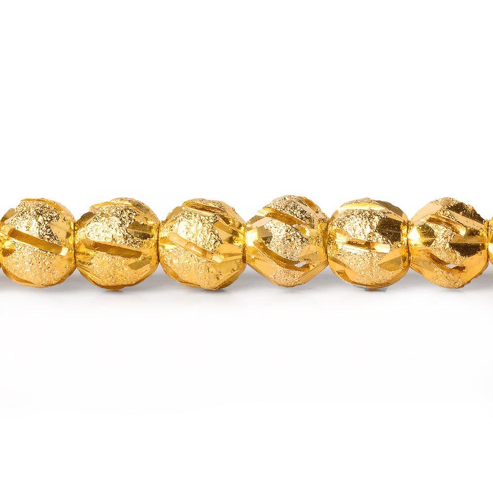 5mm 22kt Gold Plated Brass Stardust Diamond Cut Round Beads, 8 inch, 43 beads