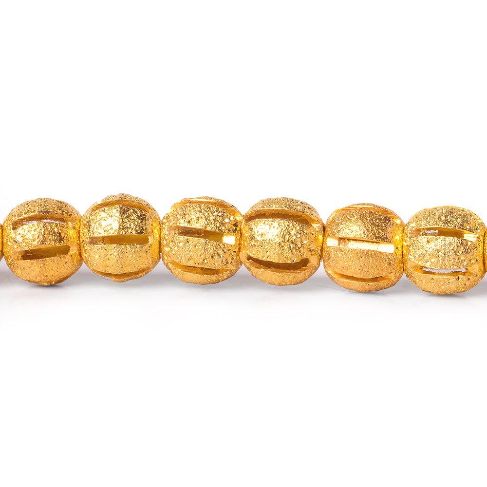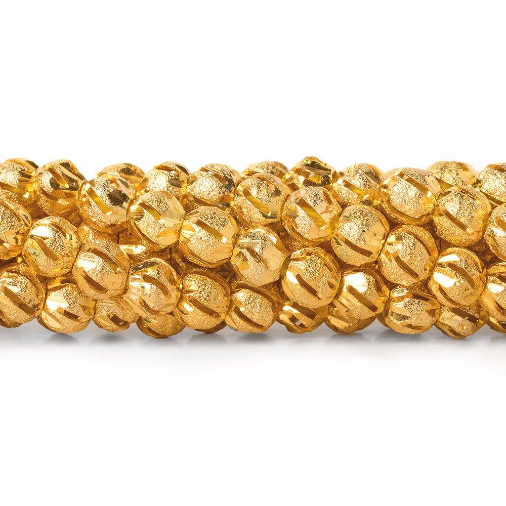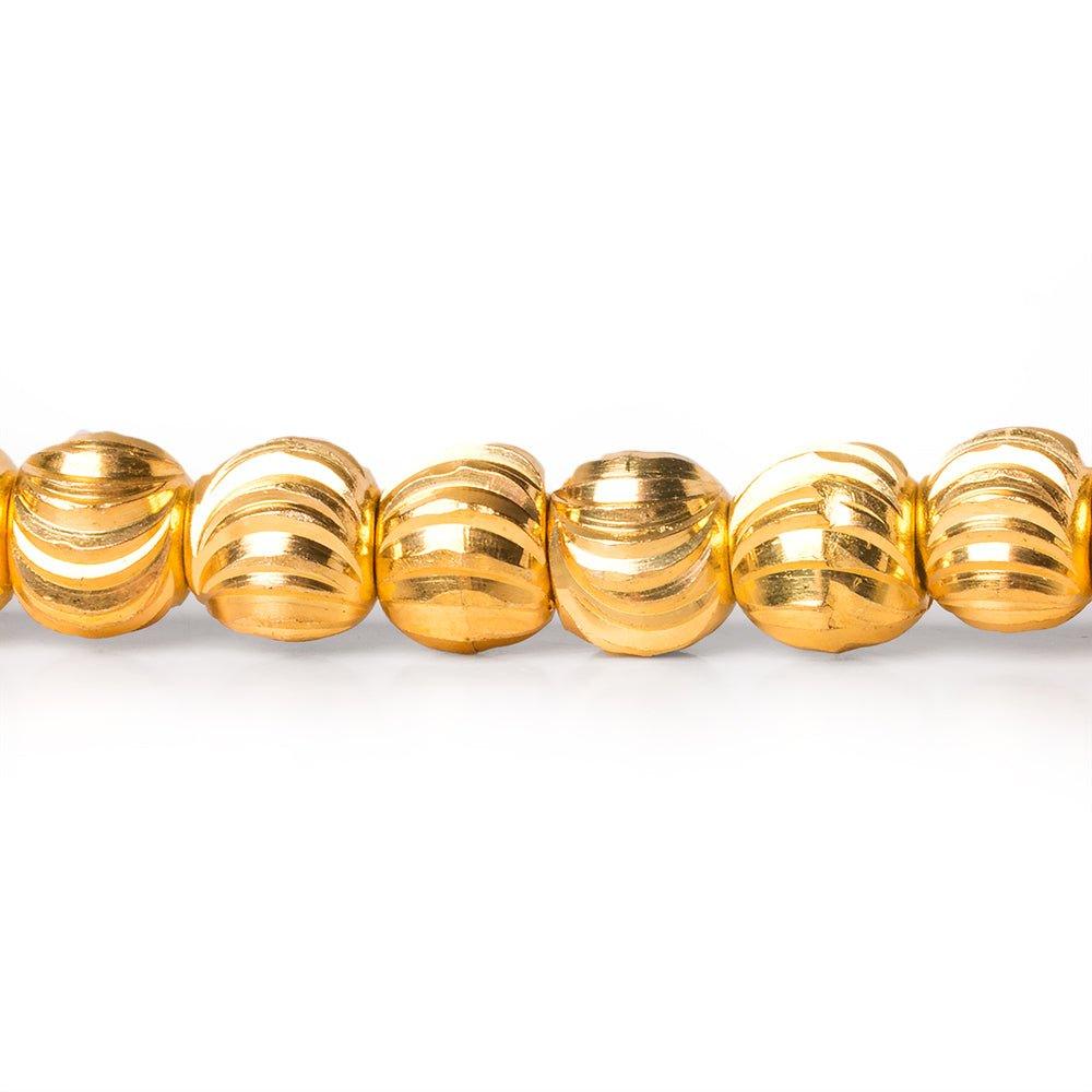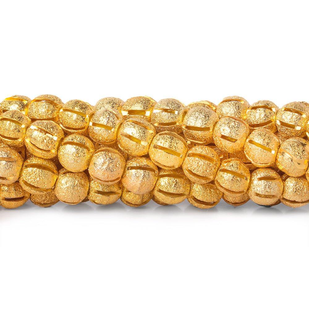 6mm 22kt Gold Plated Brass Diagonal Stripe Stardust Rounds 8 inch 37 beads
