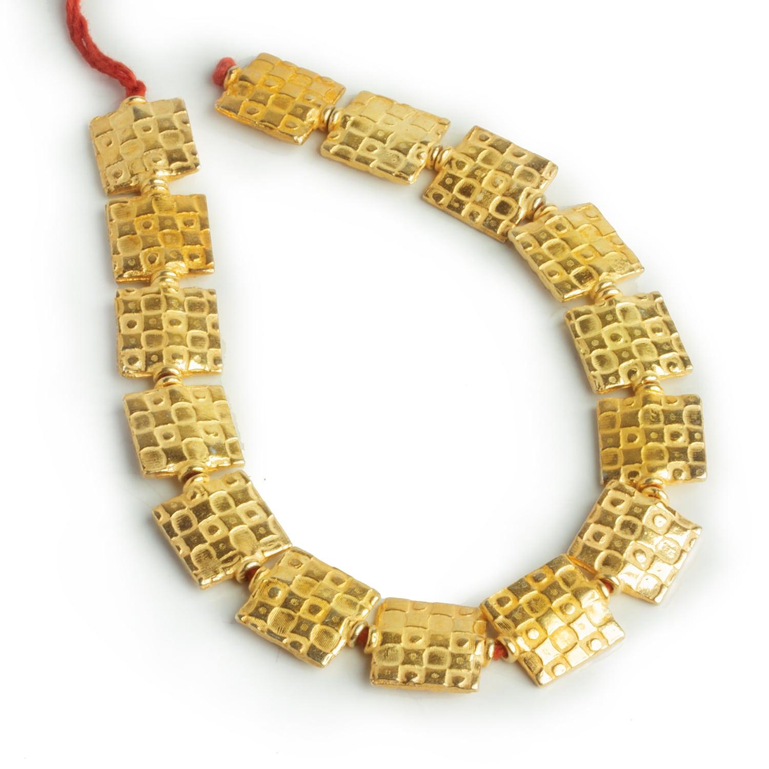 Discover sophistication with our exquisite 22kt Gold Checkerboard Pattern Square Beads, meticulously crafted to elevate your jewelry creations. Each bead features a stunning checkerboard pattern plated in luxurious 22kt gold, exuding timeless allure and charm. Made from high-quality gold plated copper, these beads offer durability and a radiant shine that enhances any design. Whether adorning bracelets, necklaces, or earrings, these versatile square beads add a touch of elegance to your creations. Explore endless possibilities and adorn your jewelry pieces with the enchanting beauty of our 22kt Gold Checkerboard Pattern Square Beads.