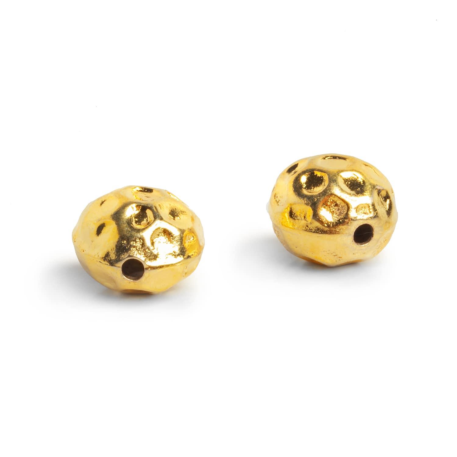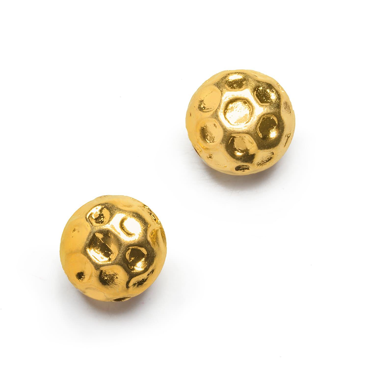 Elevate your jewelry creations with our exquisite 22kt Gold Plated Copper Round Beads, featuring charming dimples reminiscent of golf balls. Crafted with precision and sophistication, these beads add a touch of luxury to any design. Made from high-quality 22kt gold plated copper, they offer durability and a radiant shine that captivates. Whether adorning bracelets, necklaces, or earrings, these versatile beads infuse your creations with elegance and style. Explore endless possibilities and indulge in the timeless allure of our 22kt Gold Plated Copper Round Beads today