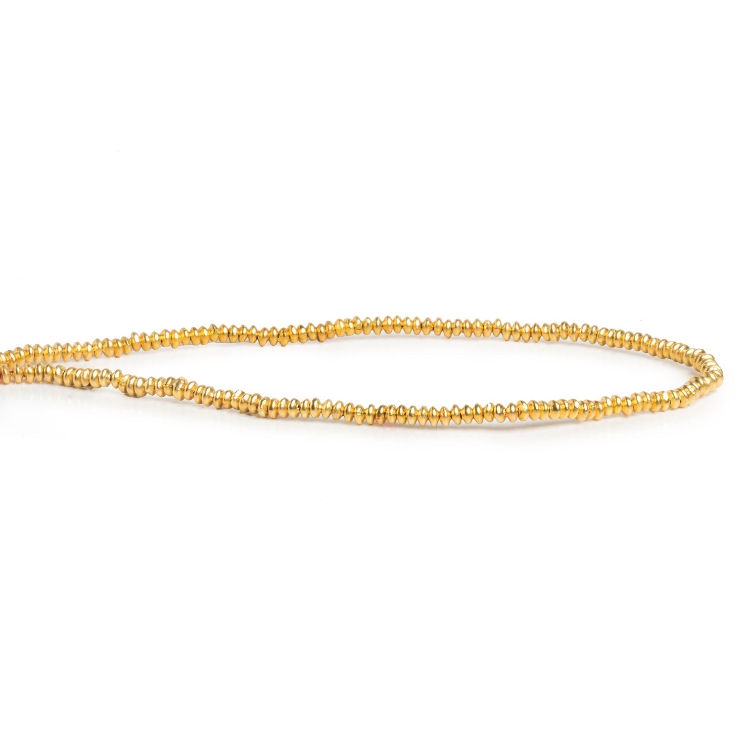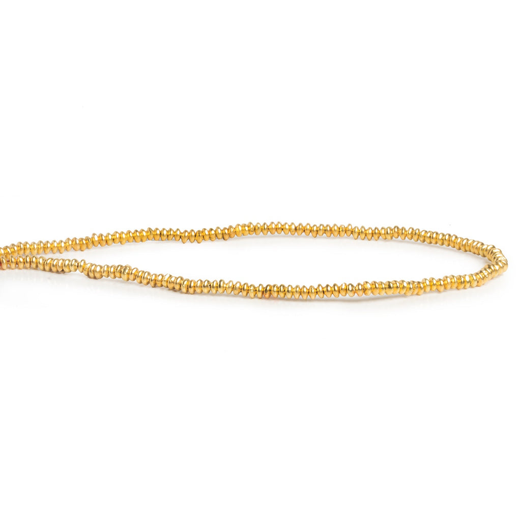 Beads measure 2.5mm in diameter. Add a touch of metallic brilliance to your jewelry designs with these Gold-Plated Copper Disc Beads. Their polished, reflective surfaces exude warmth and luxury, while their petite disc shape provides a sleek, modern aesthetic.