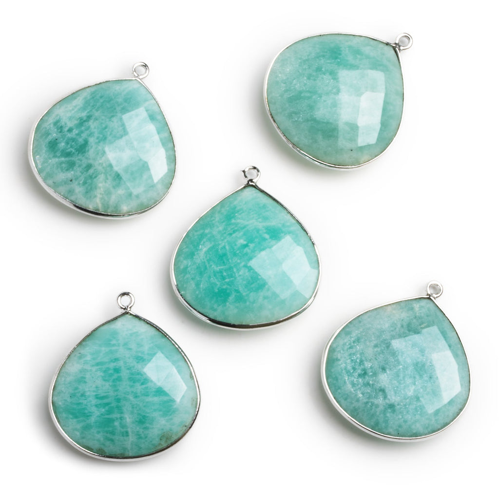 27mm Silver Bezeled Amazonite Faceted Heart Pendant - The Bead Traders