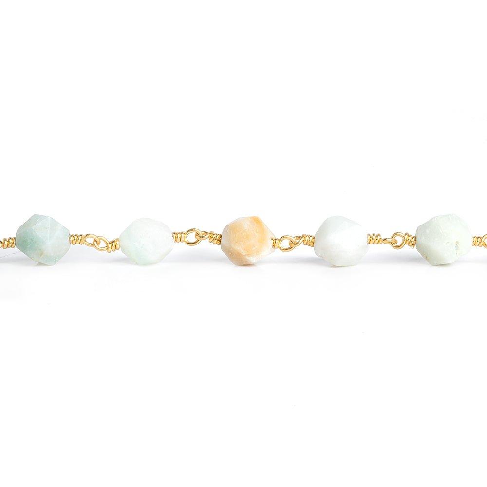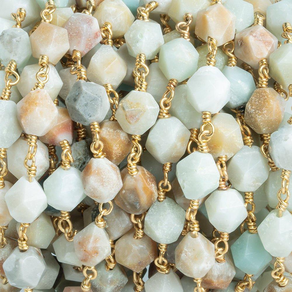 6mm Amazonite faceted round Gold plated Chain by the foot 25 beads - The Bead Traders