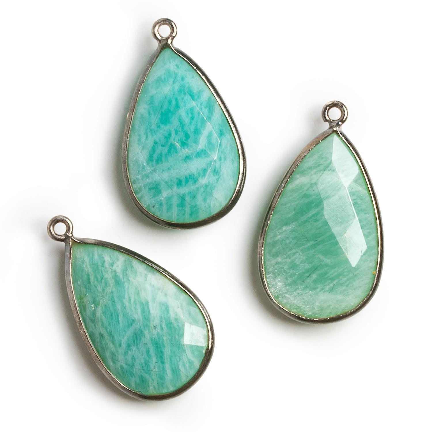 30x17mm Black Gold Bezeled Amazonite Pear Pendant 1 bead