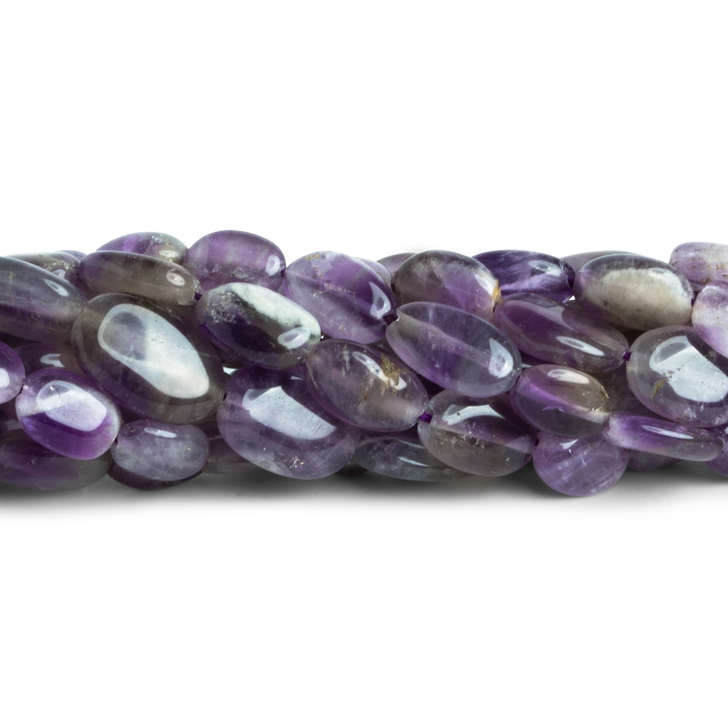 These 11x8mm Cape Amethyst plain oval beads showcase the natural, understated beauty of this distinctive South African quartz. Soft lavender to smoky violet tones mingle with translucent gray and milky inclusions, creating a calm, organic palette that feels earthy rather than overly polished. The smooth, unfaceted oval shape allows the natural color zoning and internal character of the stone to take center stage, giving each bead a quiet depth and subtle variation.