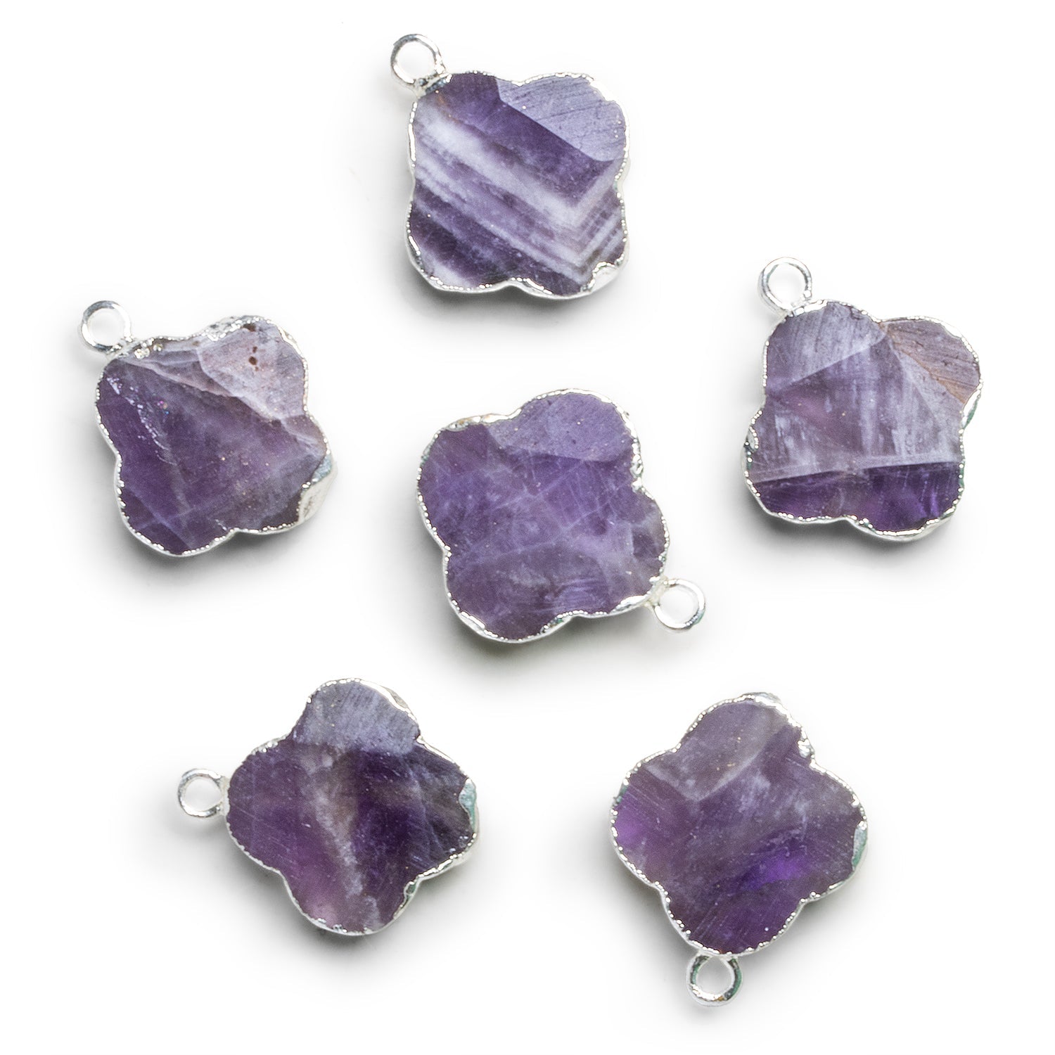 Beads measure about 15mm in diameter. Bring your designs together with a beautiful Amethyst pendant crafted into a unique, rounded flower shape perfect for a wide range of Jewelry designs. These broad-faced offerings show off some of the sought-after chevron texture indicative of Cape Amethyst. Our Flower Pendants look amazing enveloped in our signature silver leaf and are ideal for use as the focal bead of necklaces, earrings and more.