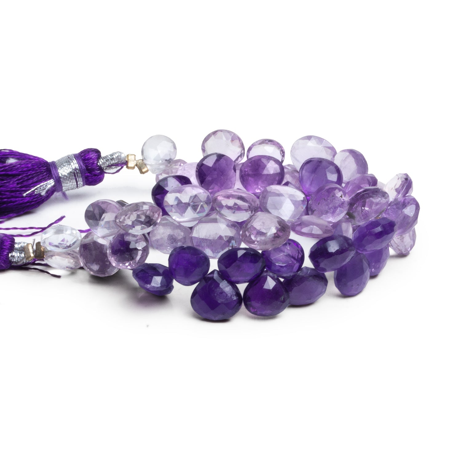 These Amethyst Faceted Heart Beads shimmer with deep, regal purples and delicate lavenders, showcasing the signature color play that makes Amethyst so beloved. Ranging in size from approximately 5mm to 7mm in diameter, each bead is expertly cut in a symmetrical heart shape with multiple facets that catch and reflect light beautifully. The result is a strand full of sparkle, dimension, and rich gemstone character.