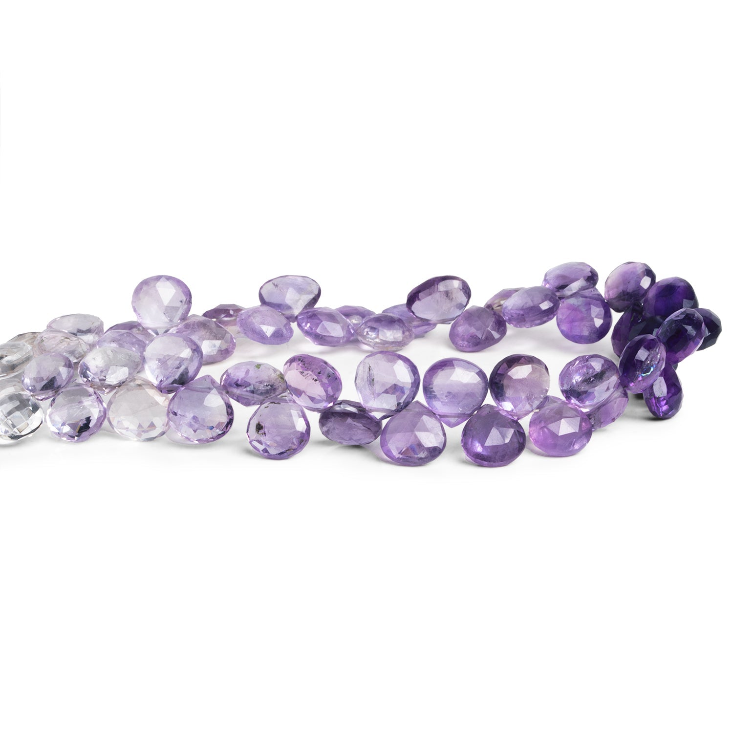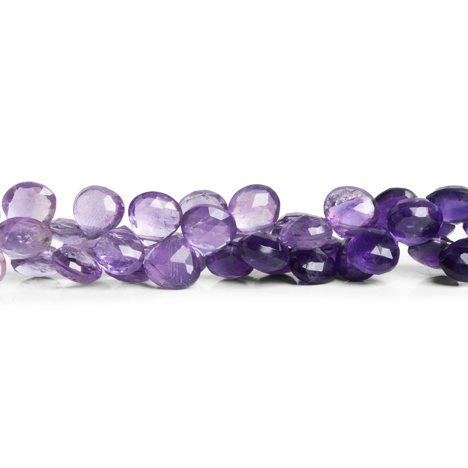 Beads measure about 6mm to 8mm in diameter. These specially curated strands feature a shaded color palette that ranges from near crystal quartz through Pink Amethyst tones to a deep and dark purple. Fans of the gemstone are outfitted with high-quality faceted pieces with excellent clarity when jumping on these unique strands, perfect for Jewelry Designs in necklaces, earrings and much more!