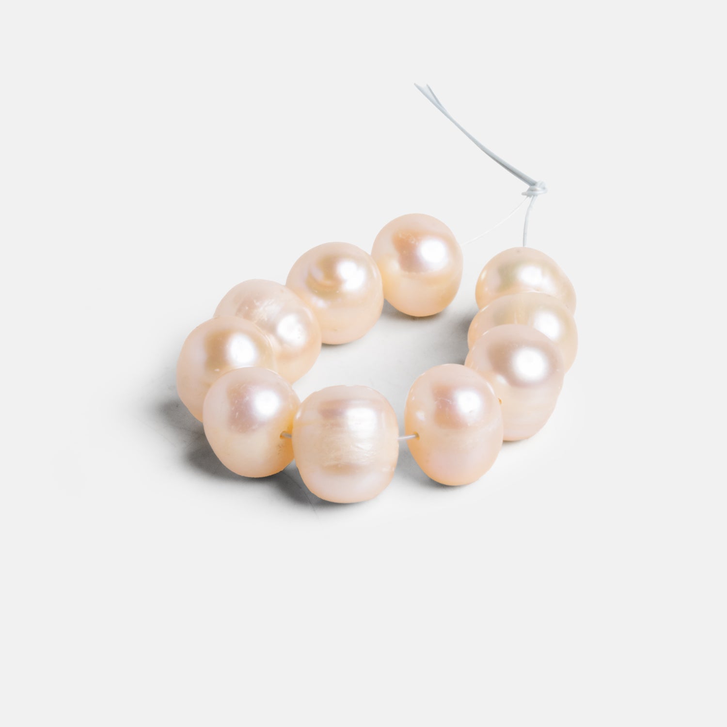 Pearls measure about 11x10mm with little variation. These gorgeous, side-drilled pearls come in matched sets of 10 pearls and show off an alluring creamy peach color curated to imbue your designs with a pop of pearlescent warmth. These sizable, high-quality pearls are ideal for a wide range of Jewelry Designs, from elegant necklaces to earrings and much more!