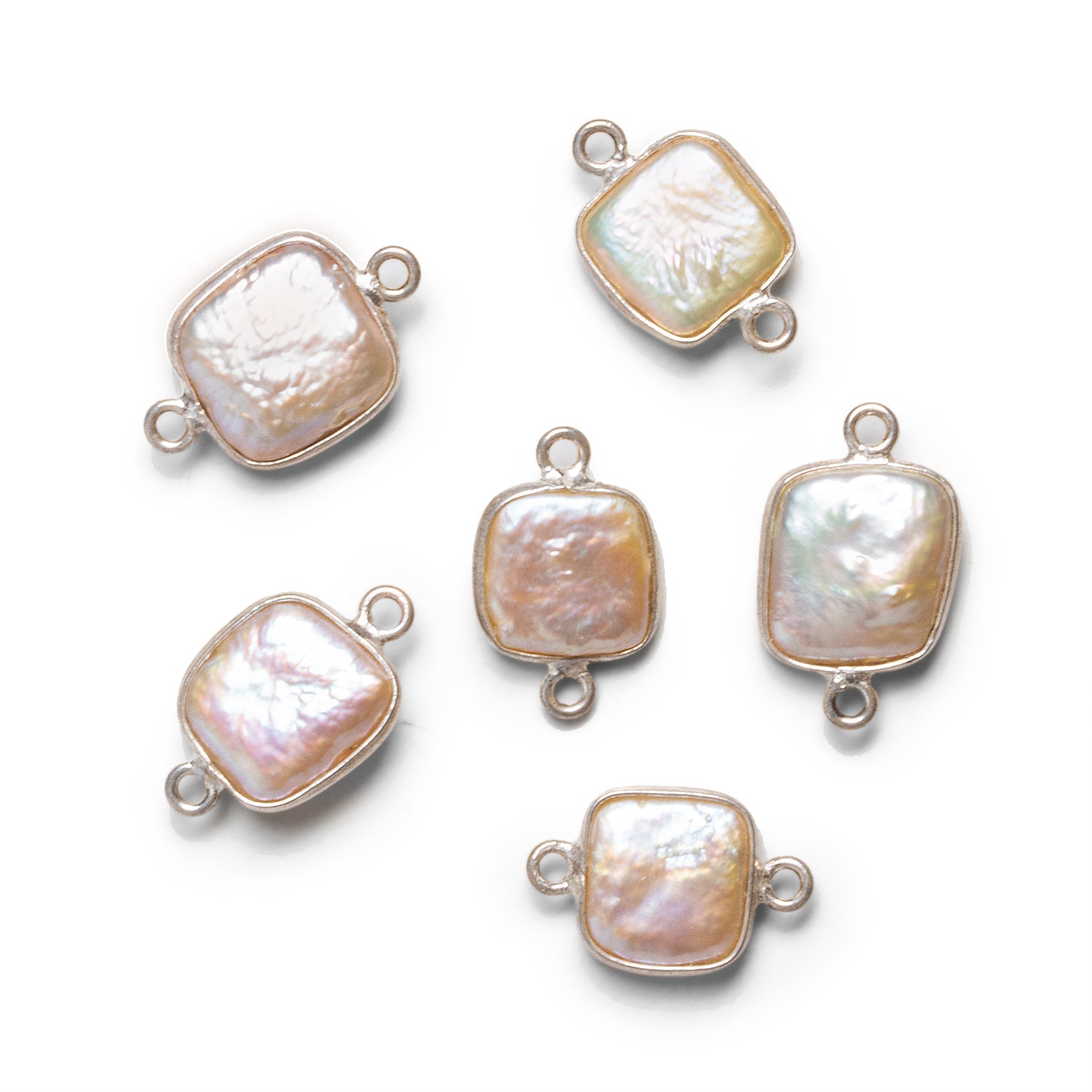 Pearls measure 17x12mm. These beautiful pieces show off a square shape with a pink to white coloration full of warm overtones. Experience our exciting connectors at their best enveloped in our signature silver bezel. These pearl focal offerings are ideal for bringing together a necklace, earrings and a wide variety of Jewelry Designs.