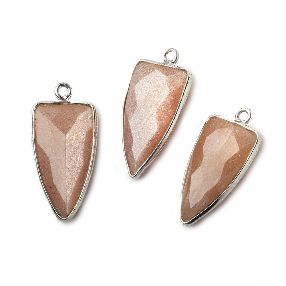 21x11mm Silver Bezel Angel Skin Peach Moonstone faceted point Pendant 1 focal bead