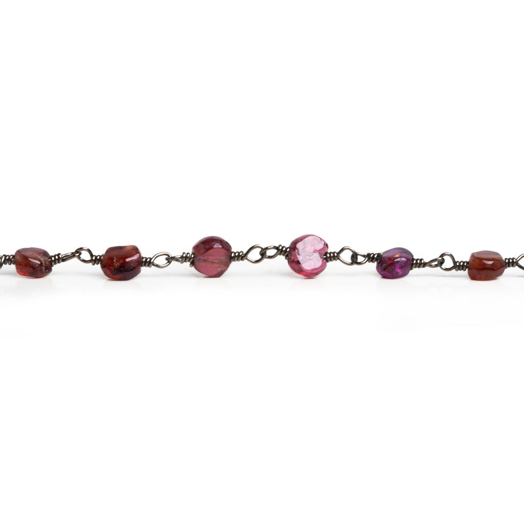 Beads measure about 5mm in diameter and include roughly 30 beads per foot of chain. These lovely, richly colored Garnets are handcrafted into plain coin shapes whose dainty size combines with elegant red wine tones. Paired with our handwrapped, black gold chain this offering is destined to dazzle in a wide range of Jewelry Designs calling for a naturalistic cut and eye-catching hue. Imbue your designs with Garnet's signature mystique ideal for use in necklaces, earrings and more.