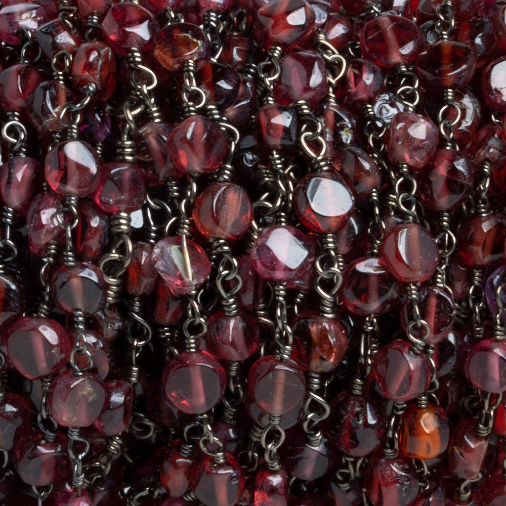 5mm Mozambique Garnet Coin Black Gold Chain 30 beads