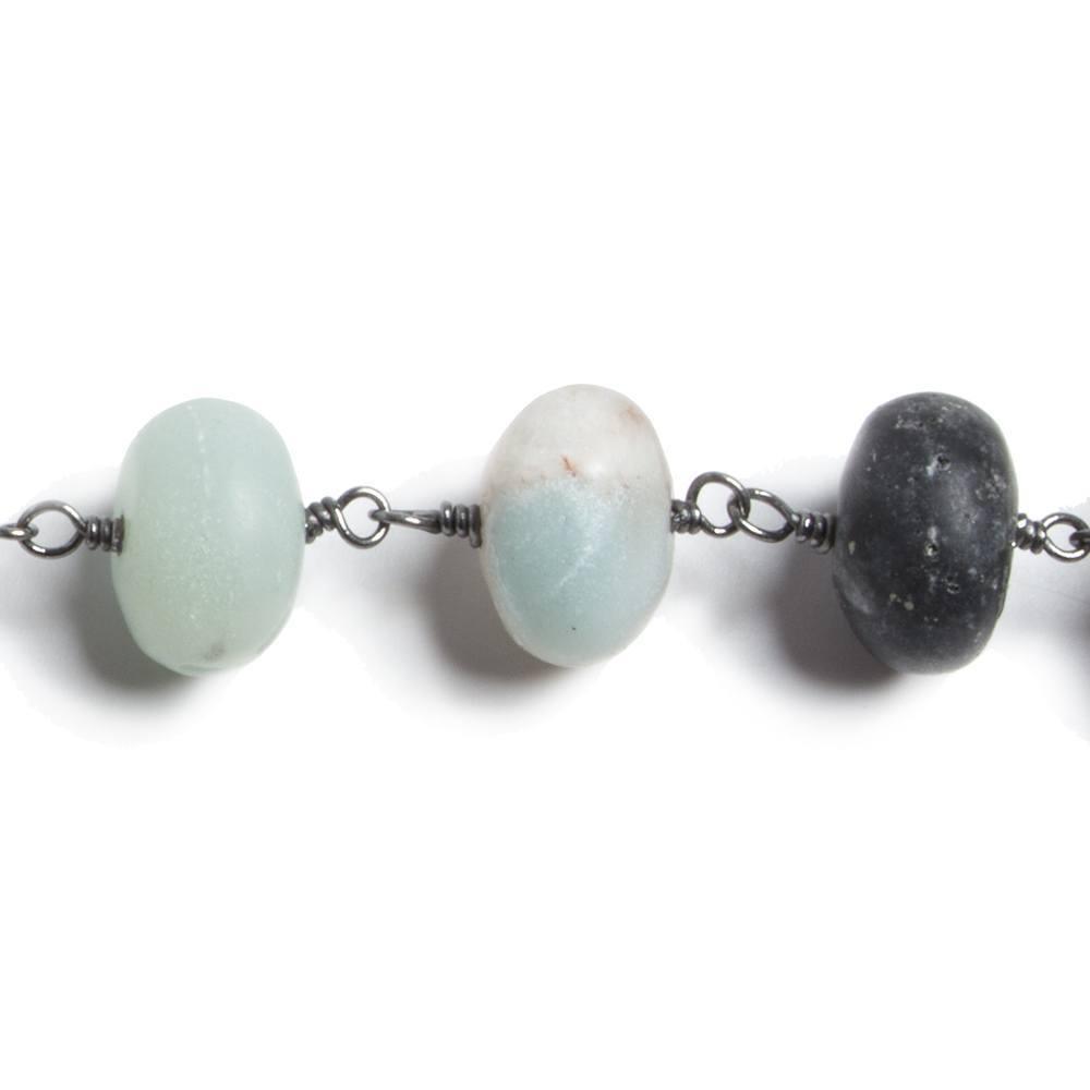 Matte Amazonite Rondelle Black Gold Chain by the Foot 32 Pieces - The Bead Traders