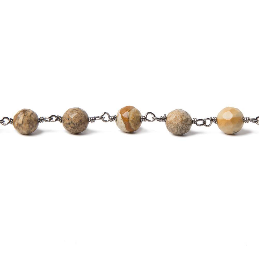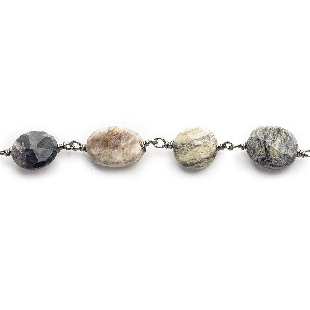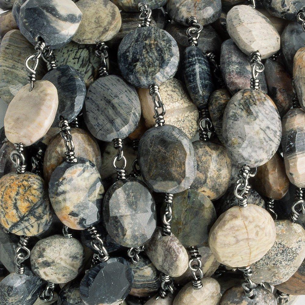 11x9.5mm-13x10.5mm Jasper Faceted Oval Black Gold Chain by the Foot 17 pieces - The Bead Traders