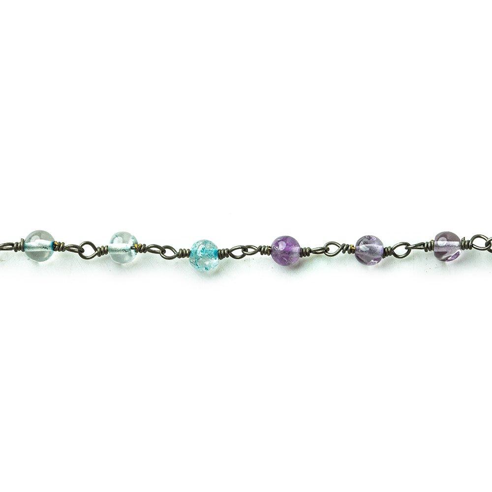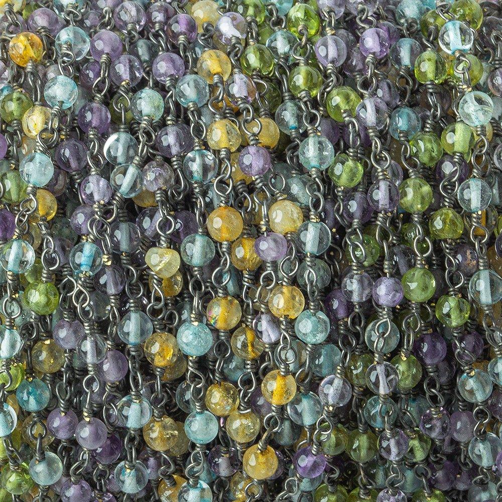 3.5mm Multi Gemstone Plain Rounds Black Gold plated Chain by the foot 36 pieces - The Bead Traders