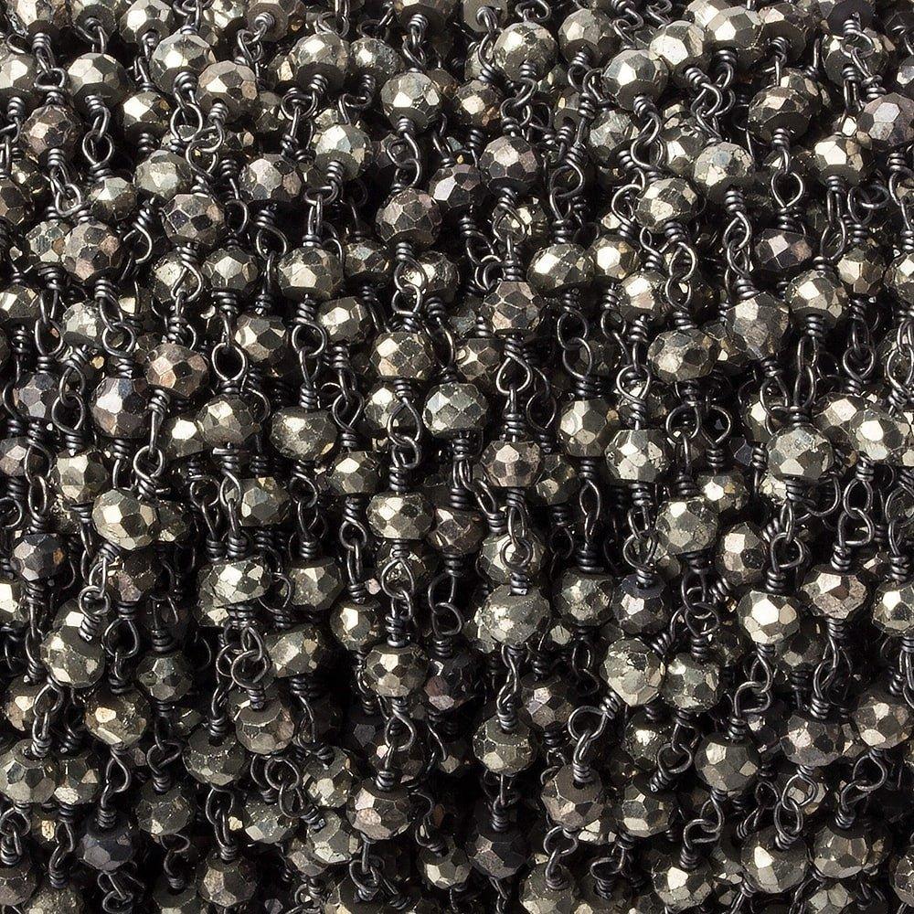 4mm Pink Amethyst faceted rondelle Black Gold plated Chain by the foot 38 pcs - The Bead Traders