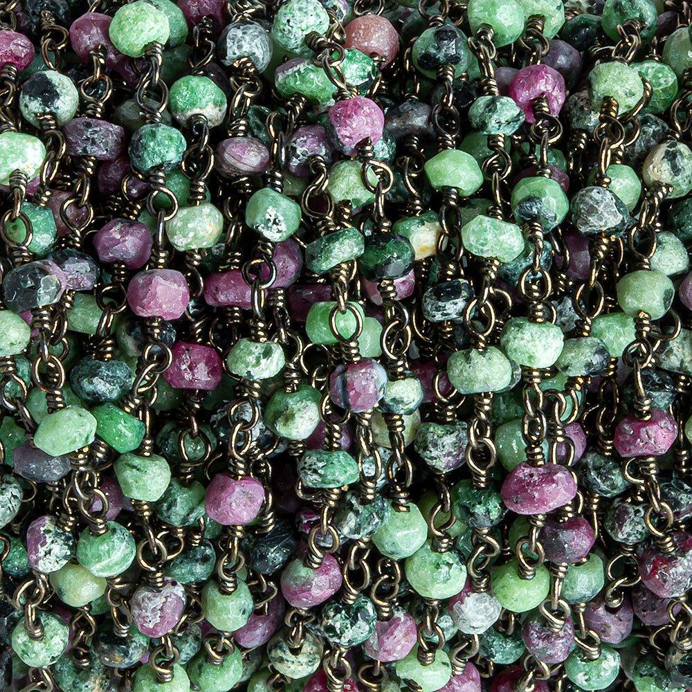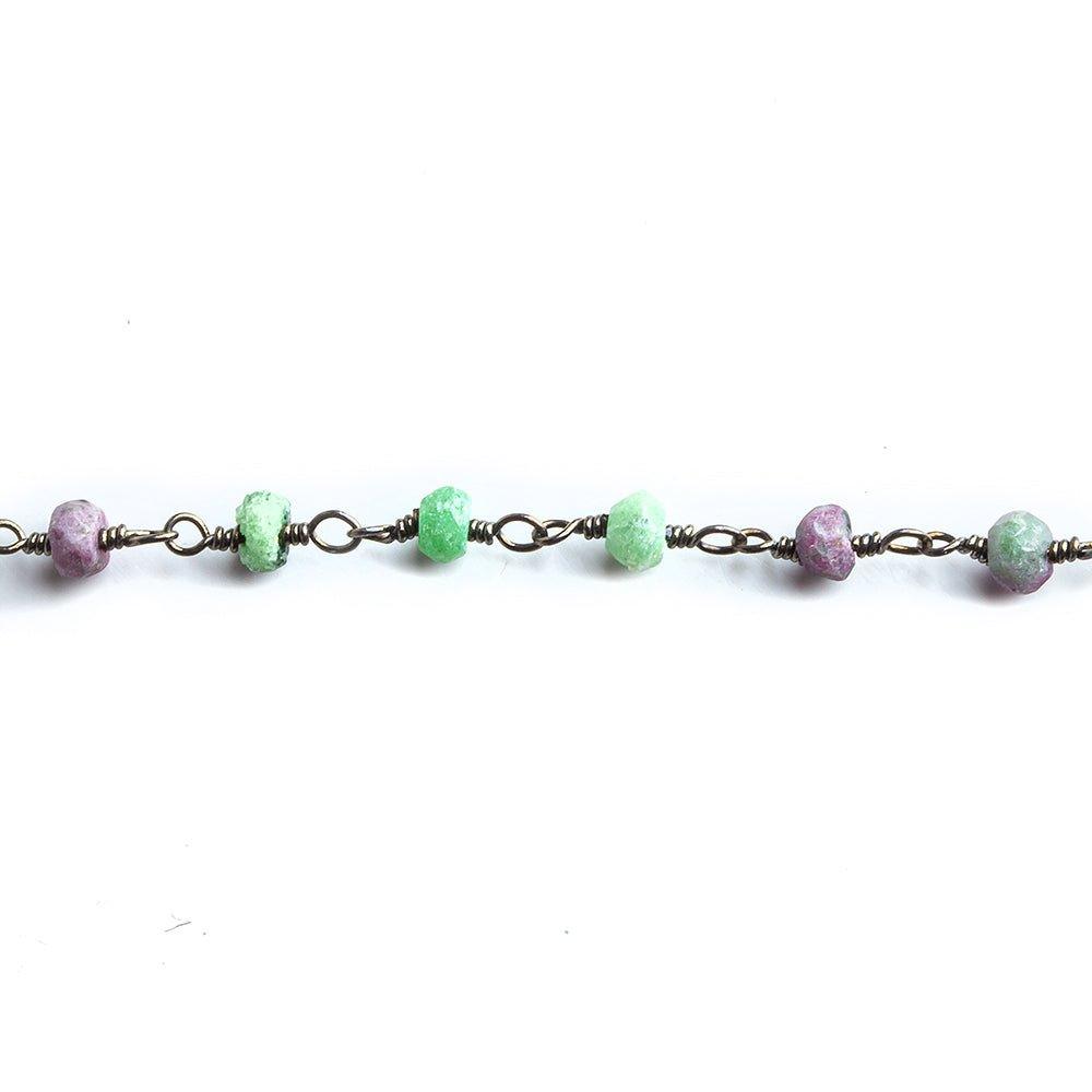 3mm Matte Ruby in Zoisite faceted rondelle Black Gold Chain by the foot 36 pieces - The Bead Traders