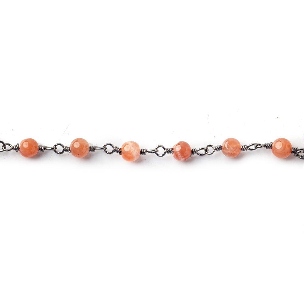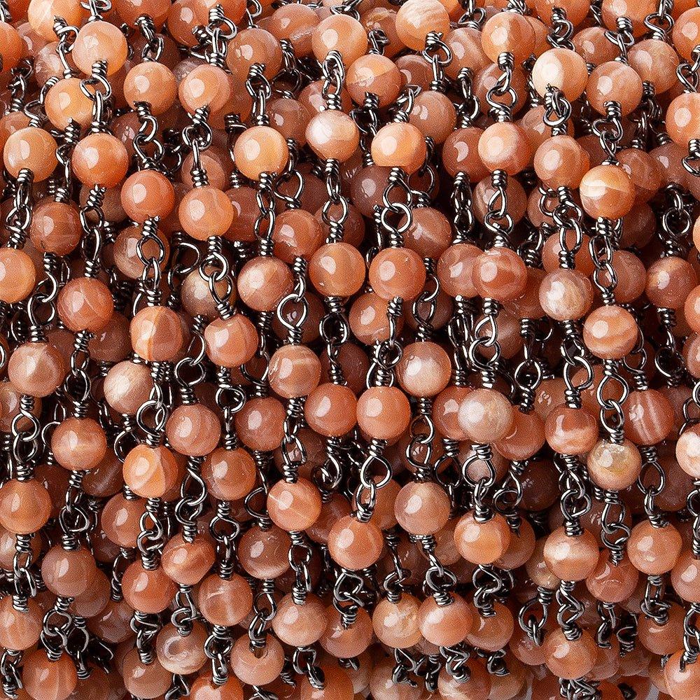 3mm Peach Moonstone Plain Round Black Gold plated Chain by the foot 35 pieces - The Bead Traders