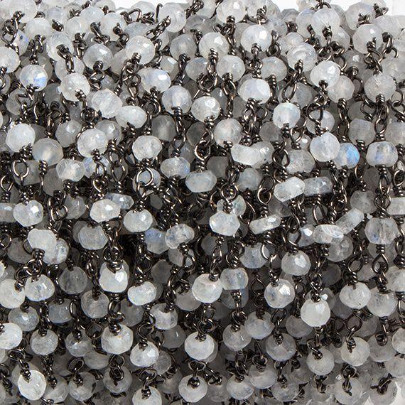 3mm Rainbow Moonstone faceted rondelle Black Gold plated Chain by the foot - The Bead Traders