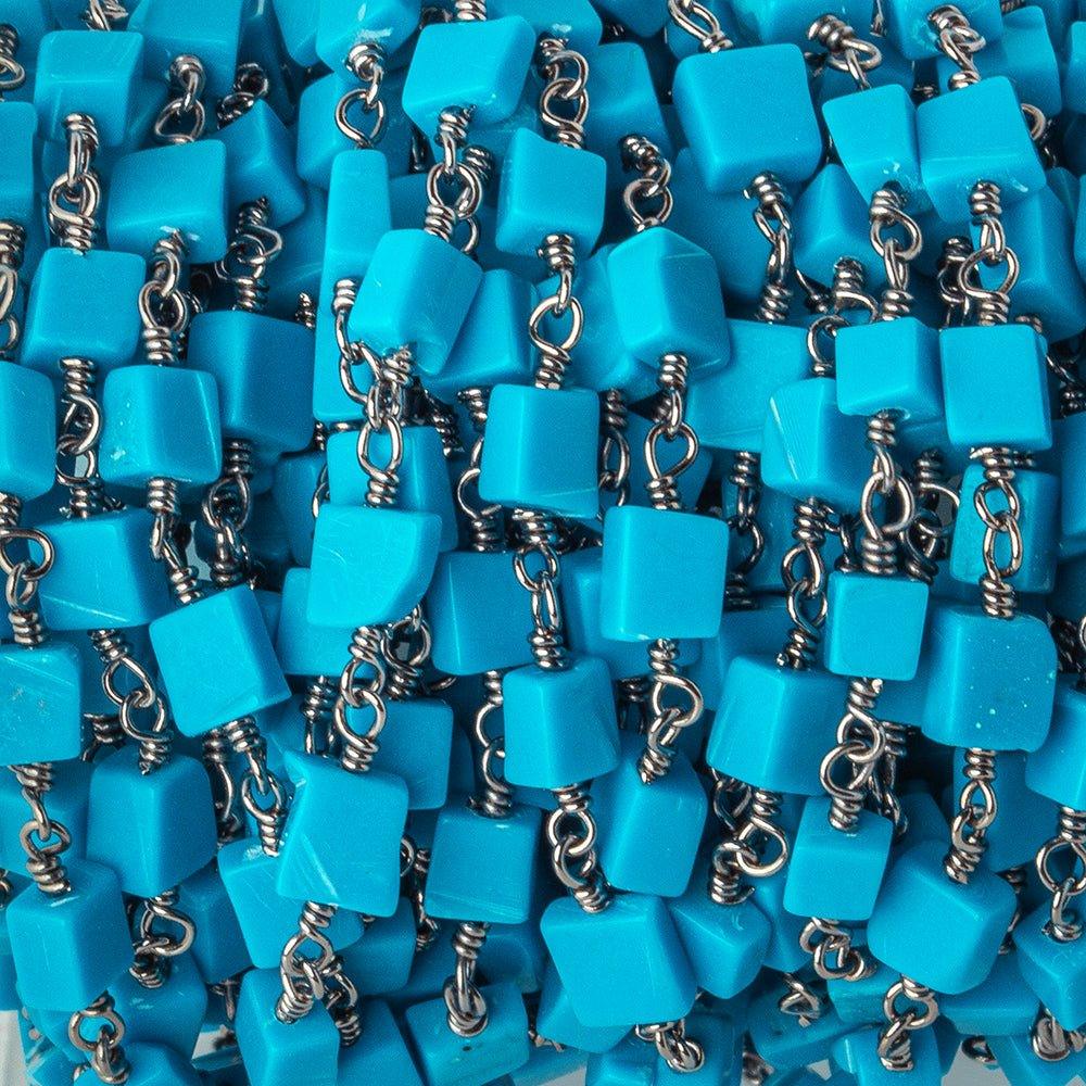 7mm-8.5mm Turkish Blue Chalcedony Plain Cube Black Gold plated Chain by the foot - The Bead Traders