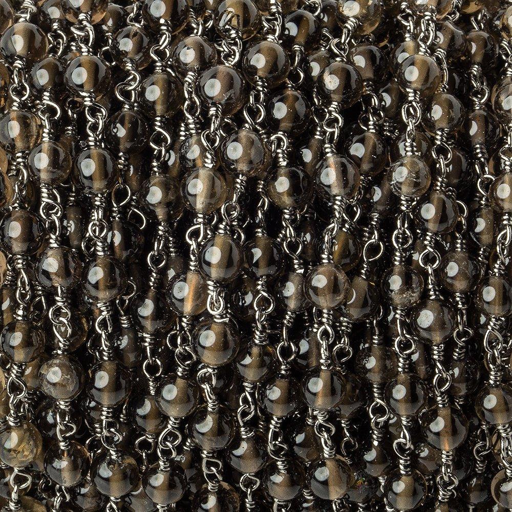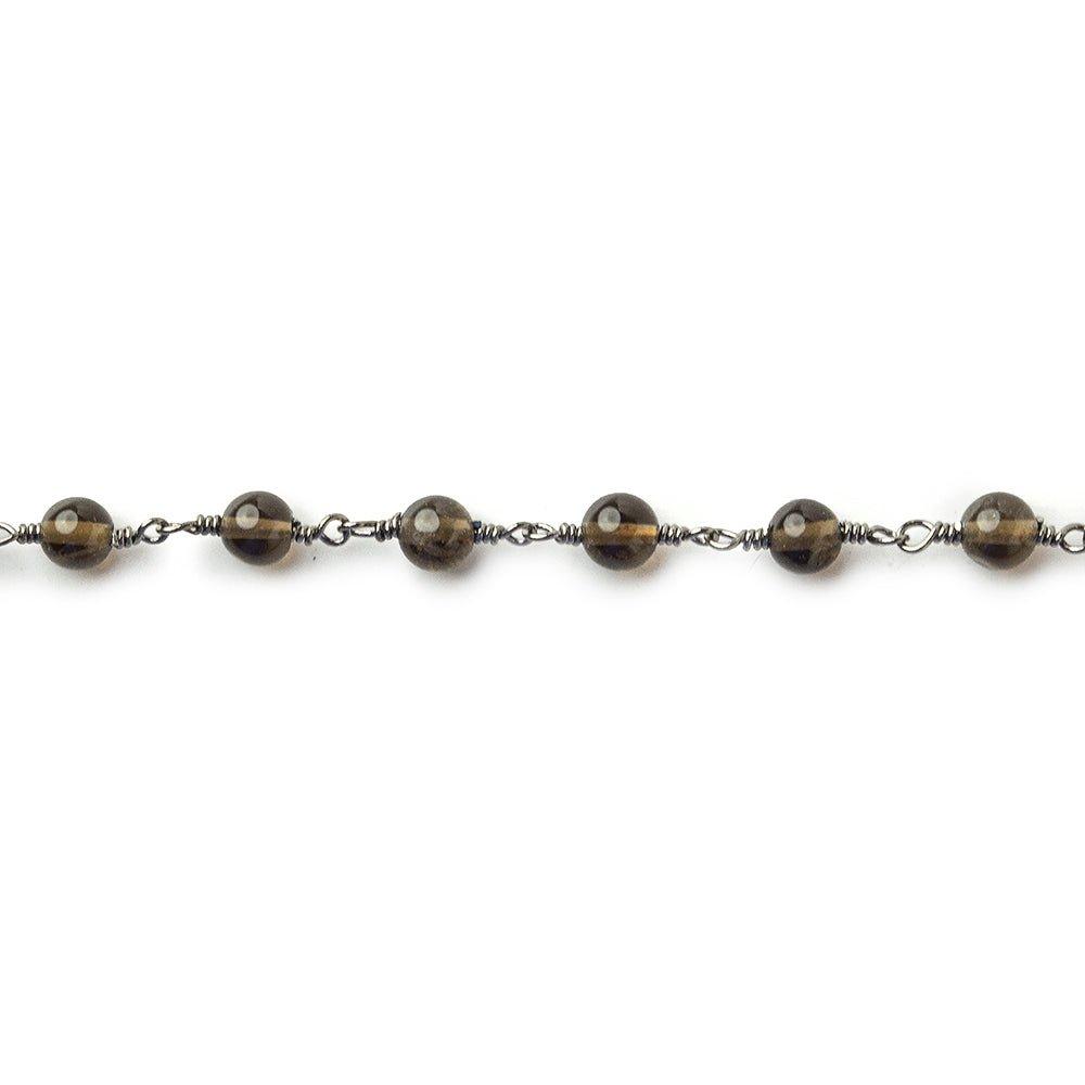 4.5mm Smoky Quartz Plain Round Black Gold plated Chain by the foot 33 pieces - The Bead Traders