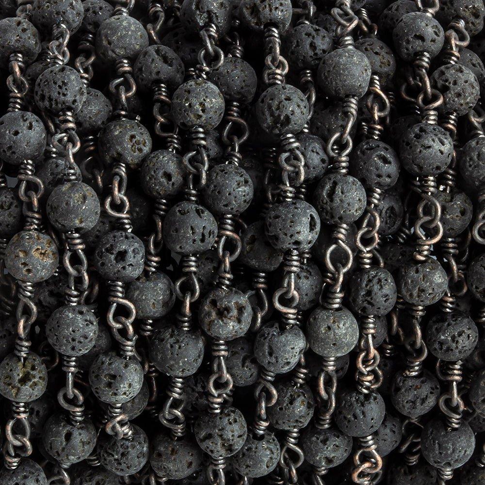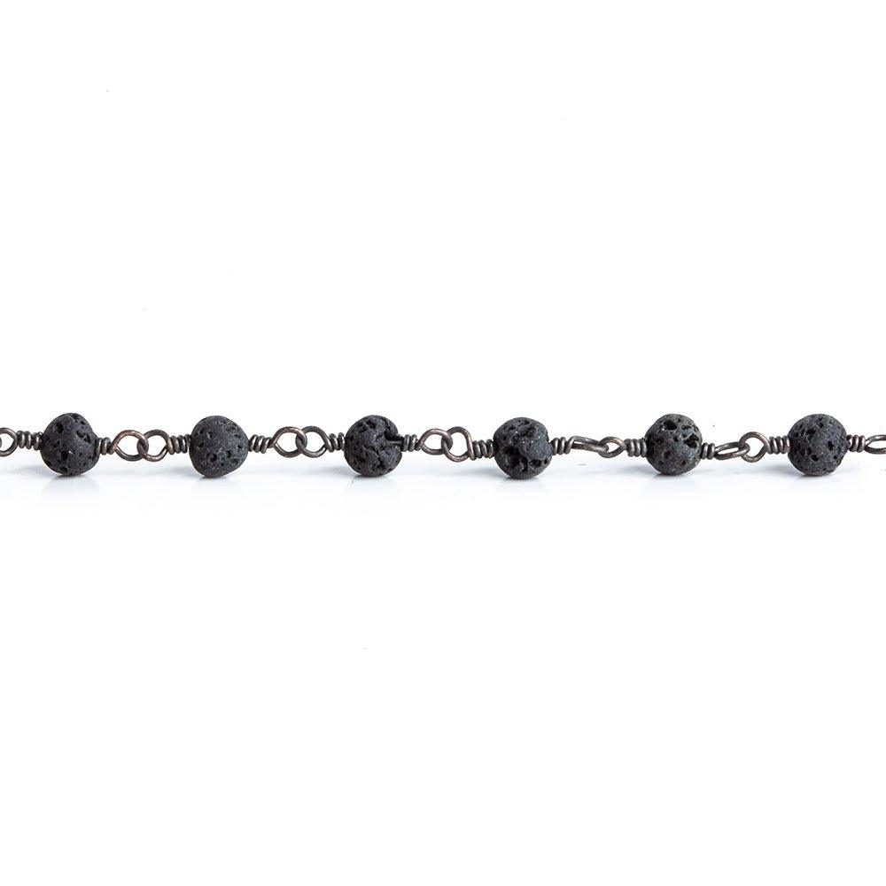 4mm Black Lava Rock Plain Round Black Gold Chain by the Foot 29 pieces - The Bead Traders