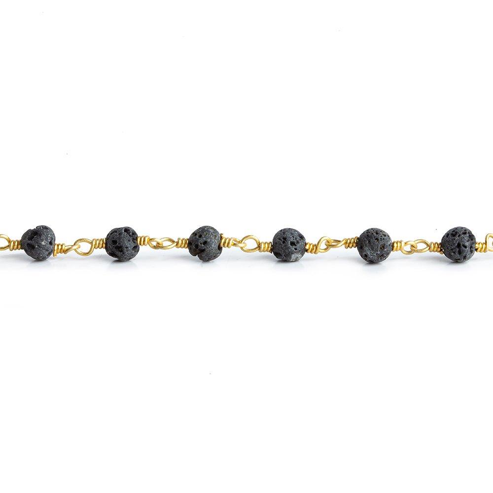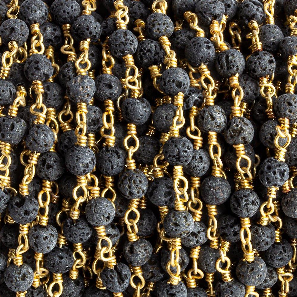 4mm Black Lava Rock Plain Round Gold Chain by the Foot 30 pieces - The Bead Traders