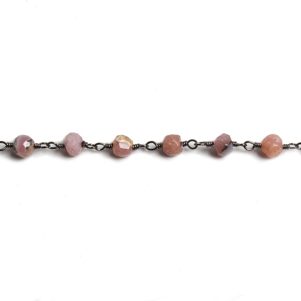 4mm Pink Peruvian Opal faceted rondelle Black Gold Chain by the foot 34 pieces - The Bead Traders