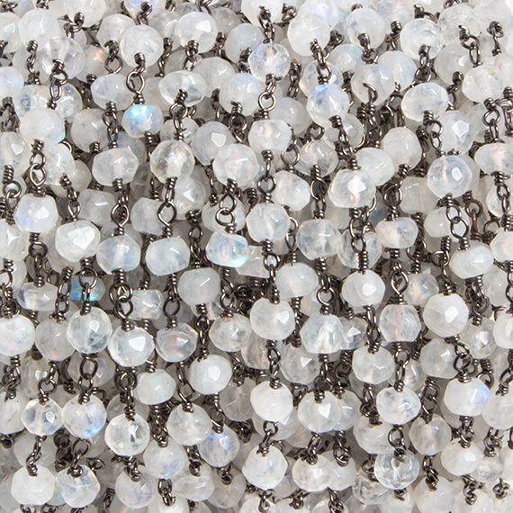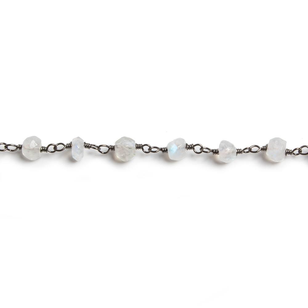 4mm Rainbow Moonstone faceted rondelle Black Gold plated Chain by the foot - The Bead Traders