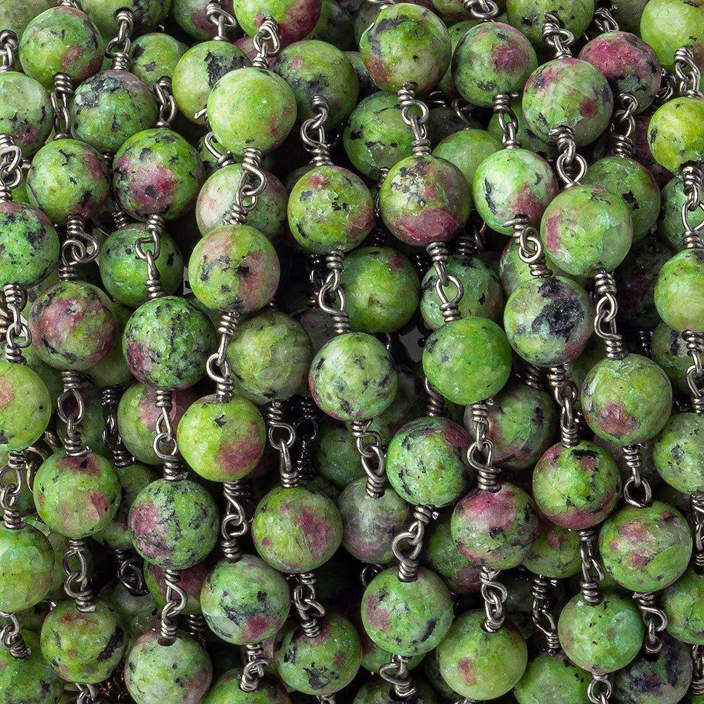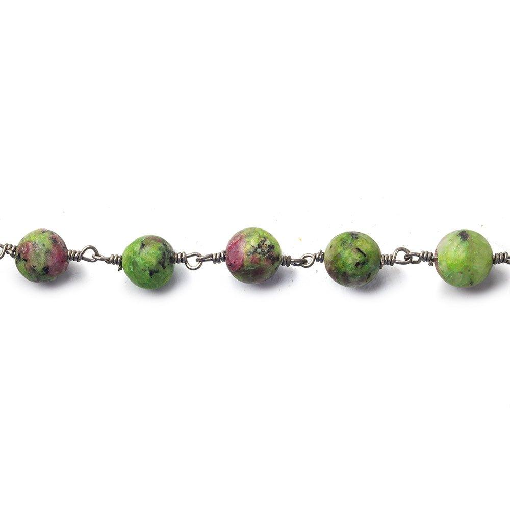 6.5mm-7mm Ruby in Fuschite Round Black Gold plated Chain 26 pcs - The Bead Traders