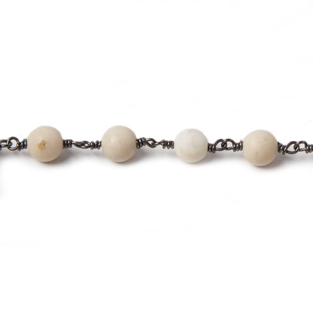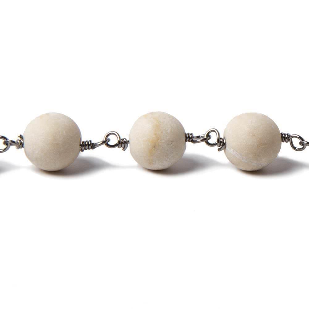 Matte Silver Leaf Jasper Plain Round Black Gold Plated Chain by the Foot 21 Pieces - The Bead Traders