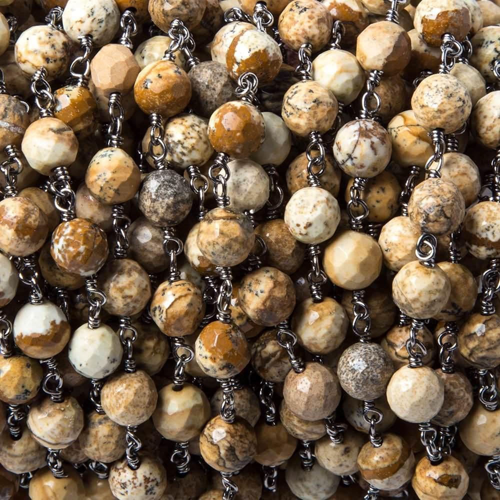 8mm MultiColor Amazonite faceted round Black Gold chain by the foot 23 pcs - The Bead Traders