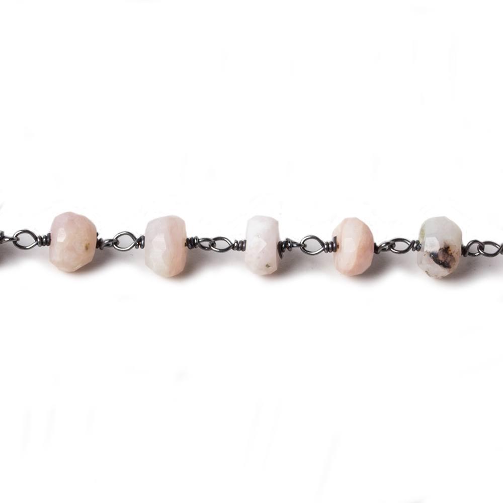 6mm Pink Peru Opal faceted rondelle Black Gold Chain by the foot 30 pcs - The Bead Traders