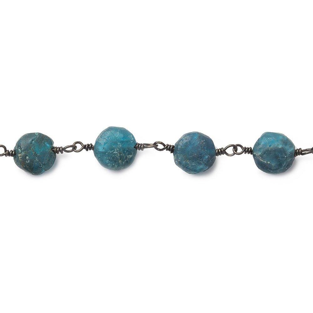 7.5-8mm Matte Apatite plain coin Black Gold plated Chain by the foot 22 beads - The Bead Traders