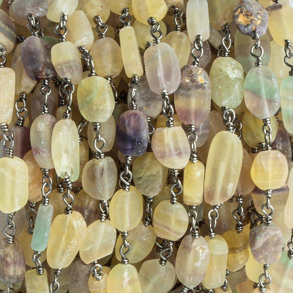 8x7mm-14x8mm Matte Fluorite Plain Nugget Black Gold Chain by the Foot 19 pieces - The Bead Traders