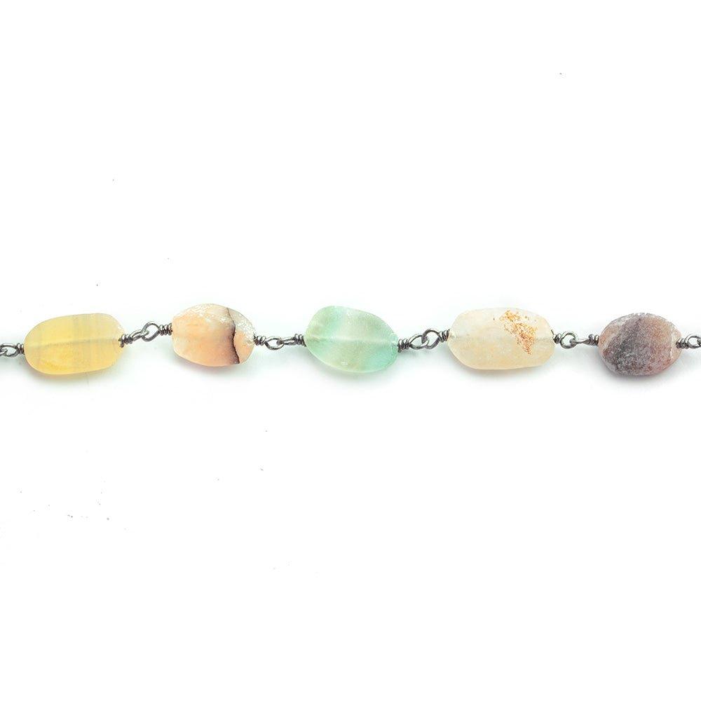 7x7-11x7mm Pink Peruvian Opal plain nuggets Black Gold plated Chain by the foot - The Bead Traders