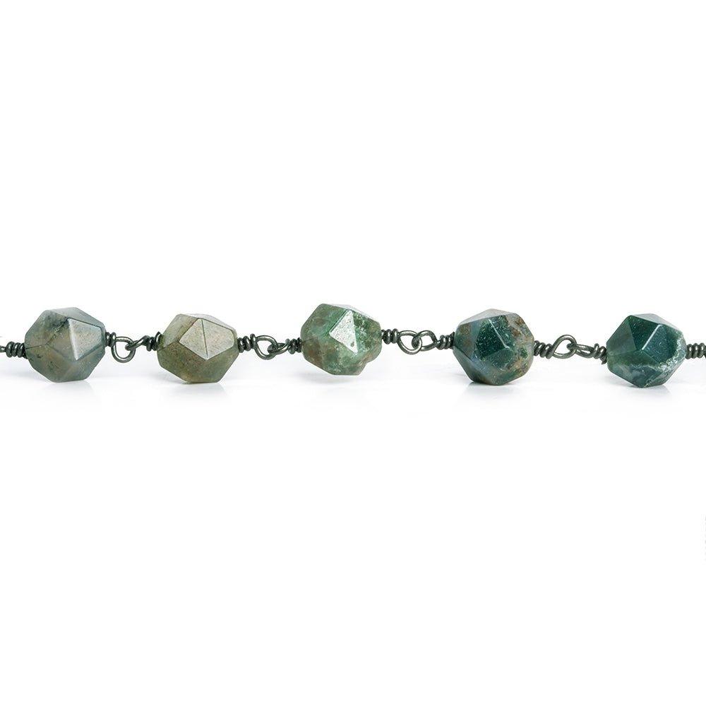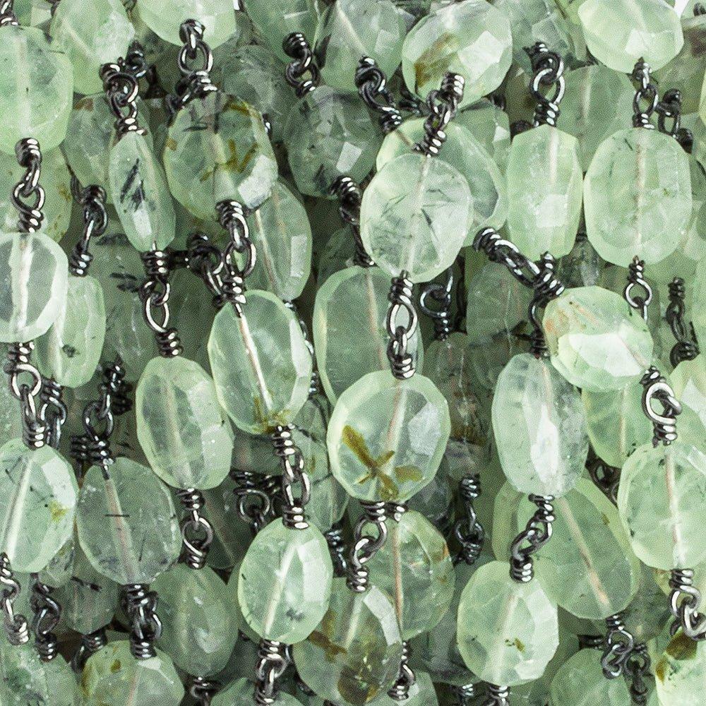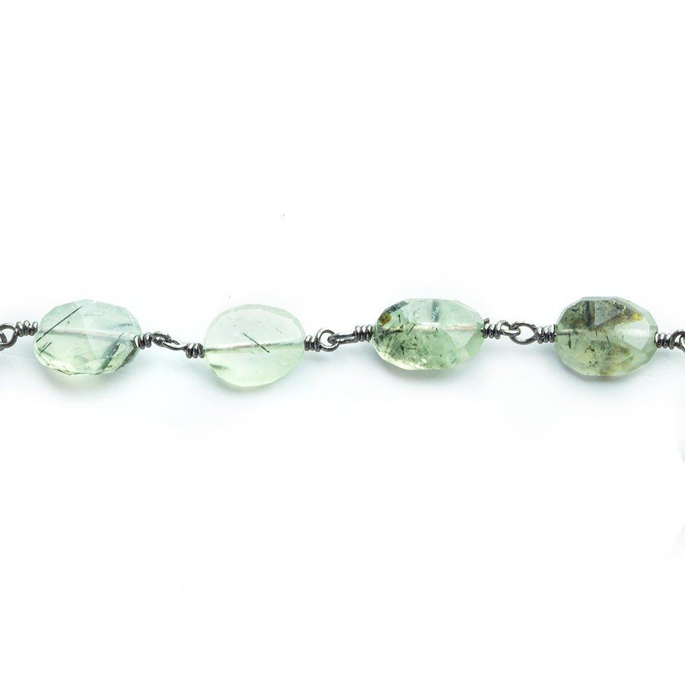 8x7mm-9x8mm Prehnite Faceted Oval Black Gold Chain by the Foot 19 pieces - The Bead Traders
