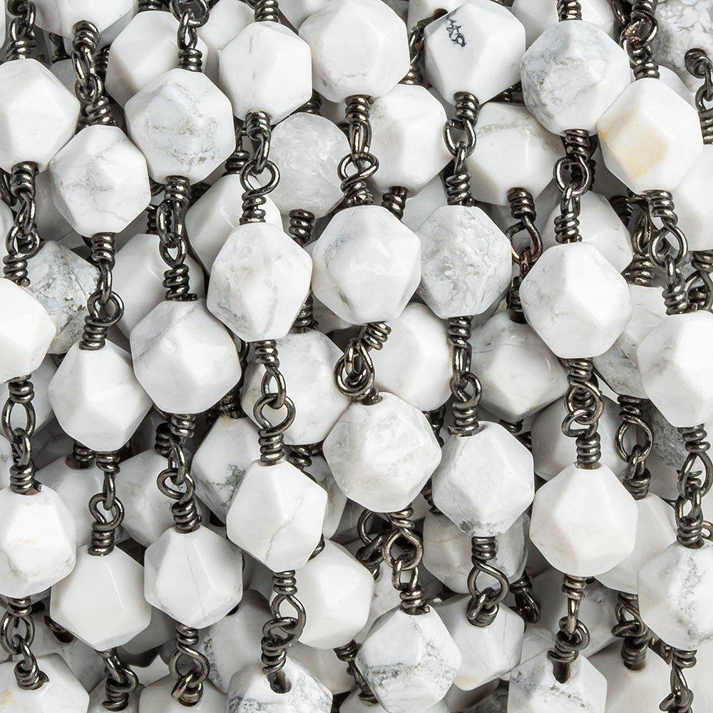 8x7mm Howlite Star Cut Faceted Round Black Gold Chain by the Foot 20 pieces - The Bead Traders