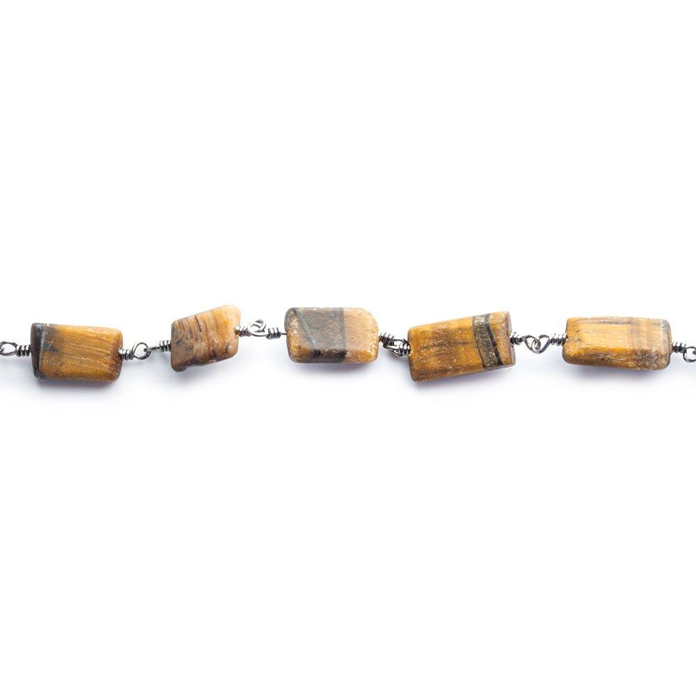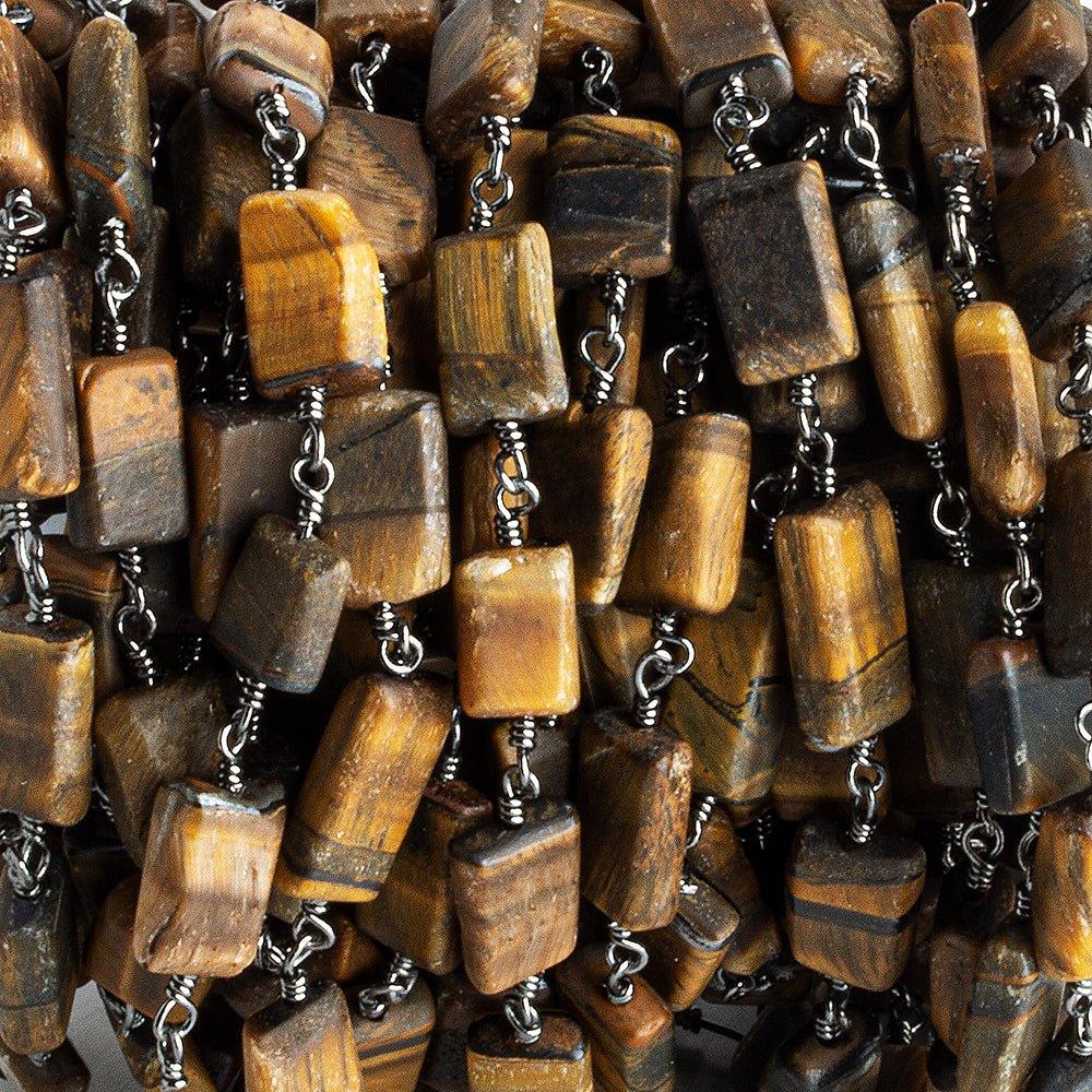 9x6mm-12x7mm Tiger's Eye Plain Rectangle Black Gold plated Chain by the foot 19 pieces - The Bead Traders