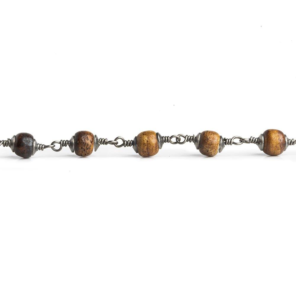 Brown Bone Round Capped Black Gold Chain by the Foot 23 pieces - The Bead Traders