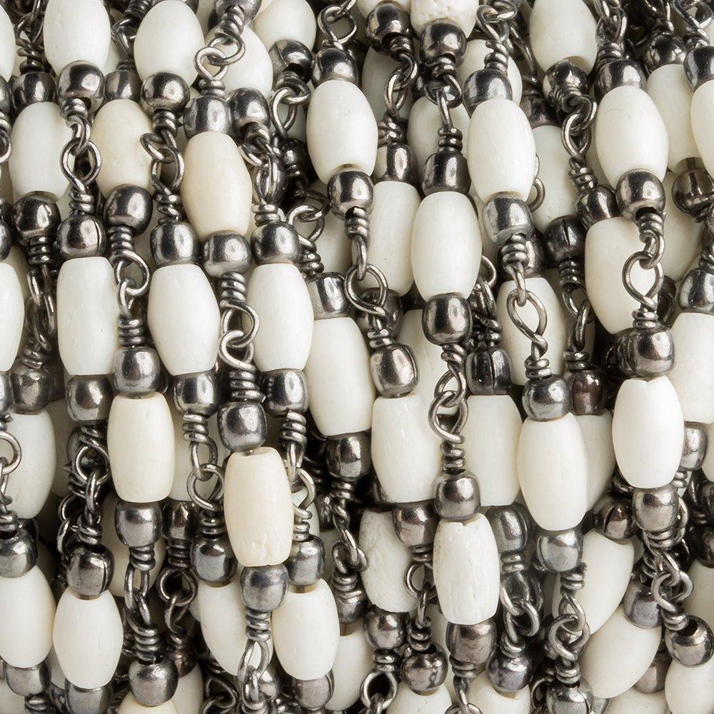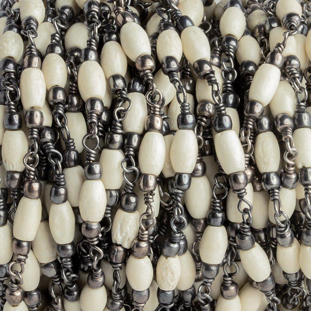 Off White Bone Barrel Black Gold Chain by the Foot 15 pieces - The Bead Traders